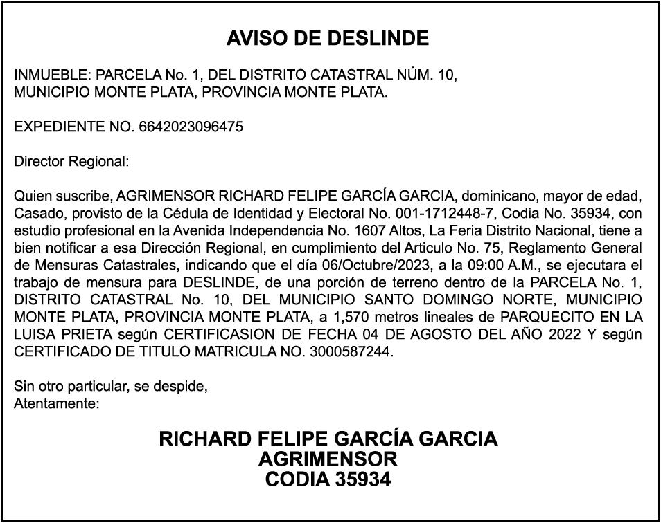 CASTILLO CASTILLO, ced. Nos. 028-000469468 y 402-2393769-5, respectivamente.
