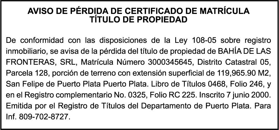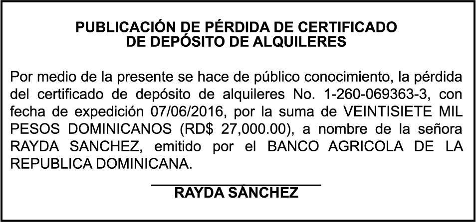 FINANCIEROSe hace de público conocimiento la pérdida del Certificado