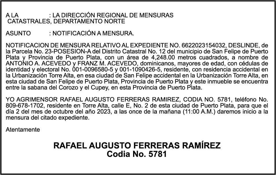 FEDERICO REYNOSO RUIZ, Ced. 002-00449593 Y 002-0138325-4 RESPECTIVAMENTE.