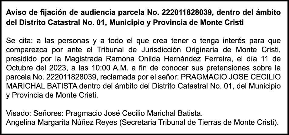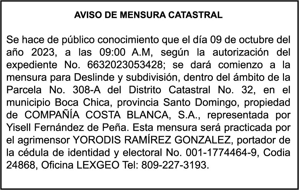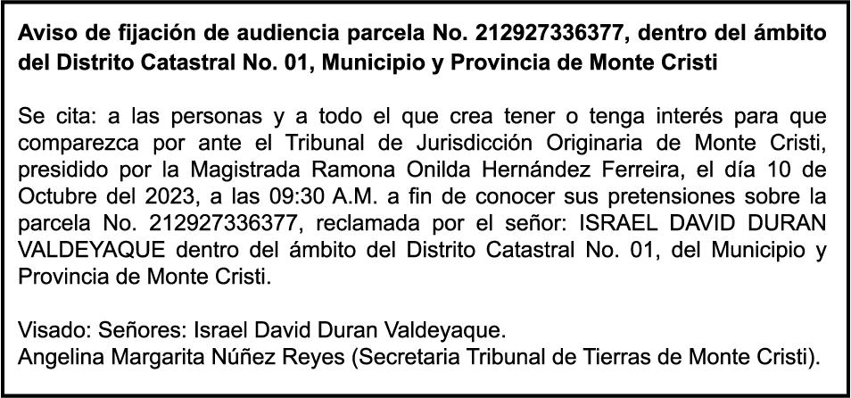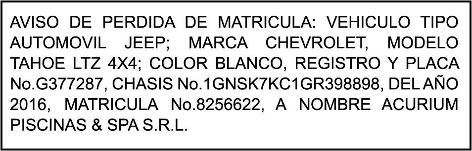 AVISO:TRASPASO DE EMBARCACION. LA Señora. MARIA JOSELYN ALEXANDRA SANCHEZ, TRASPASA LA EMBARCACION DE NOMBRE “MI BUCHUA”, MATRICULA. NO. BPM504-5231SDG, DE 28.0 PIES DE ESLORA, COLOR BLANCO, AL SEÑOR.