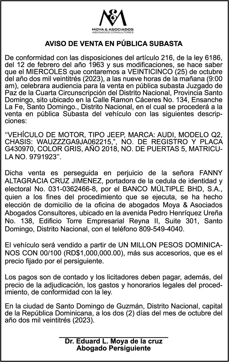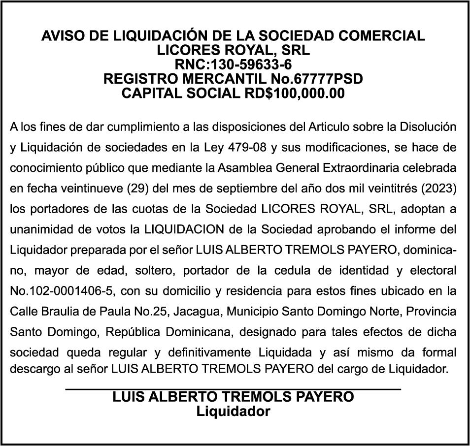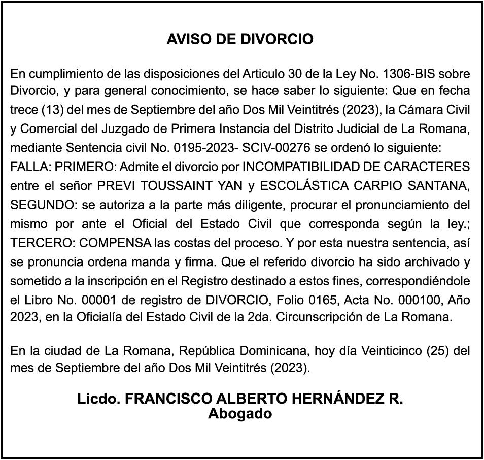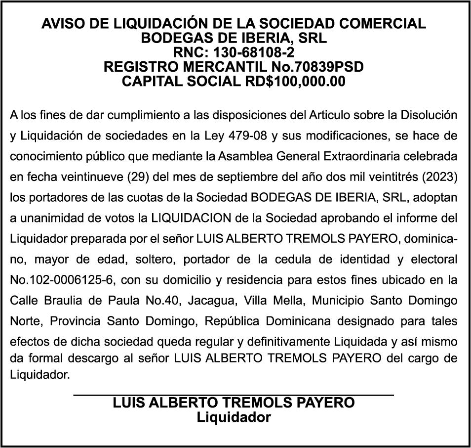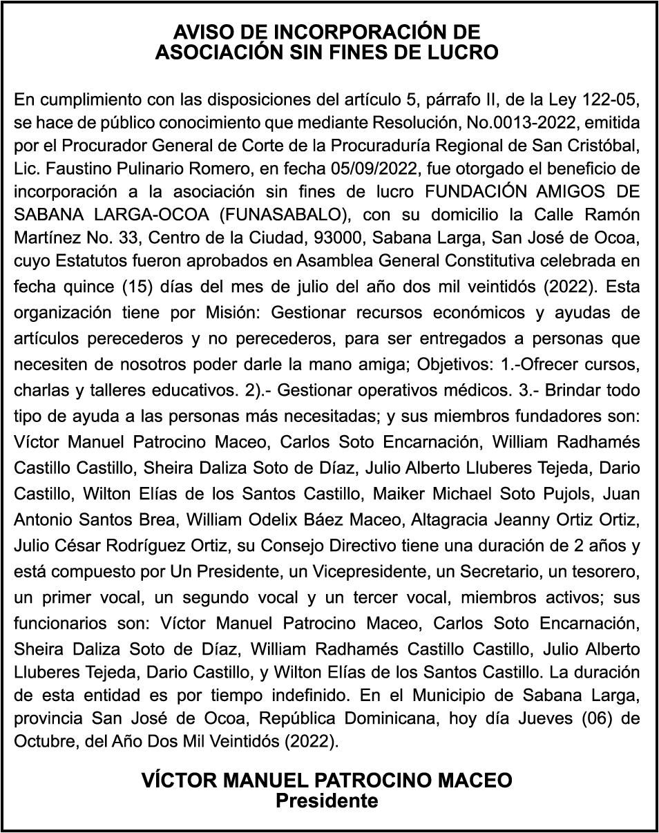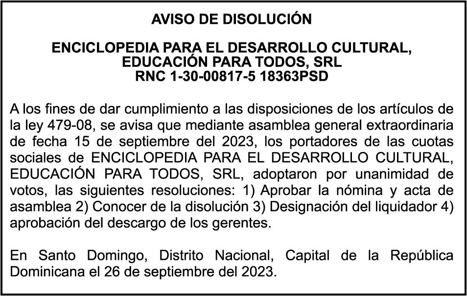 SE HACE de público conocimiento la pérdida de certificado de depósito número 827814757 emitido por Banco Popular Dominicano, S. A., a favor de FABIO LUIS GARCIA GUERRA Cedula de identidad y Electoral número 001-03753232, expedido en fecha 20 de mayo de 2022 por el monto de (US$10,040.23), más intereses generados a la fecha.