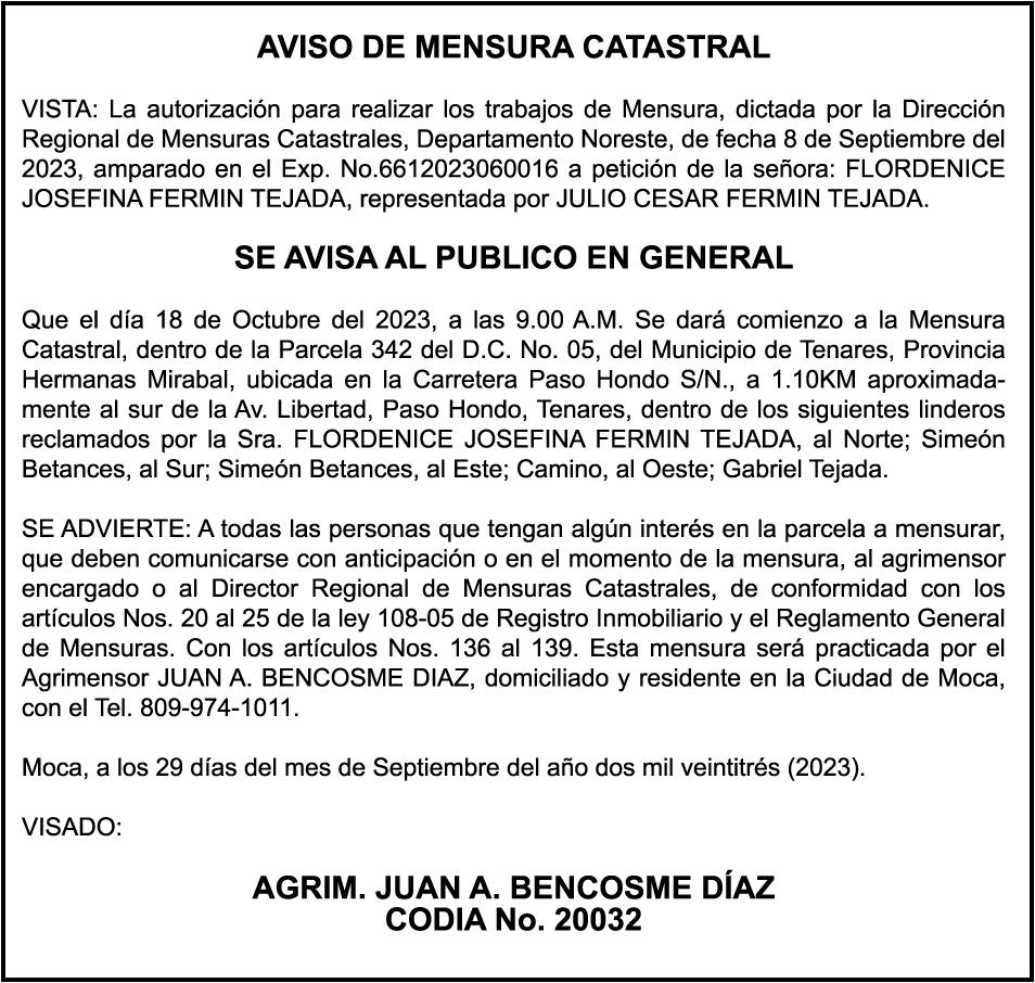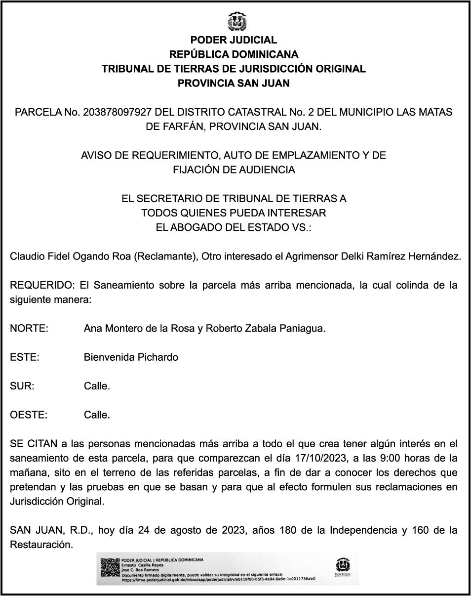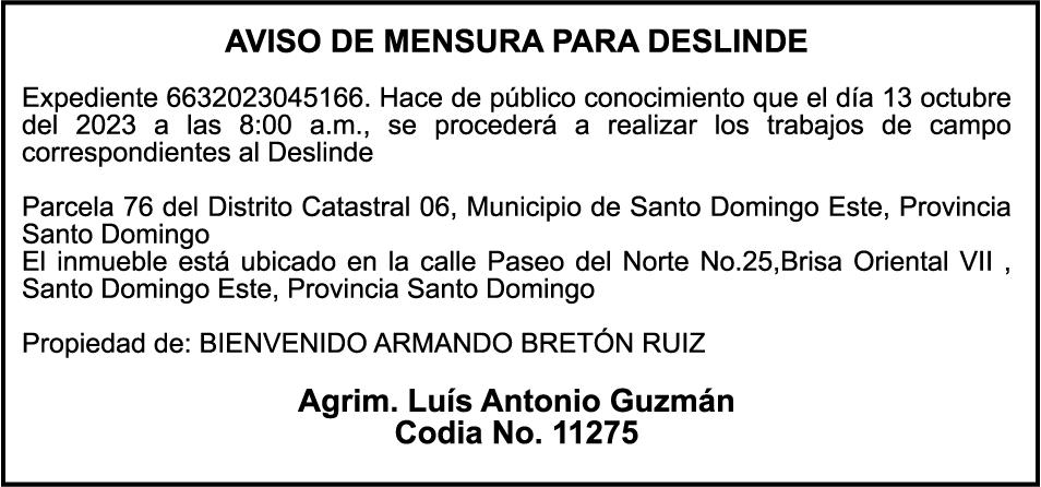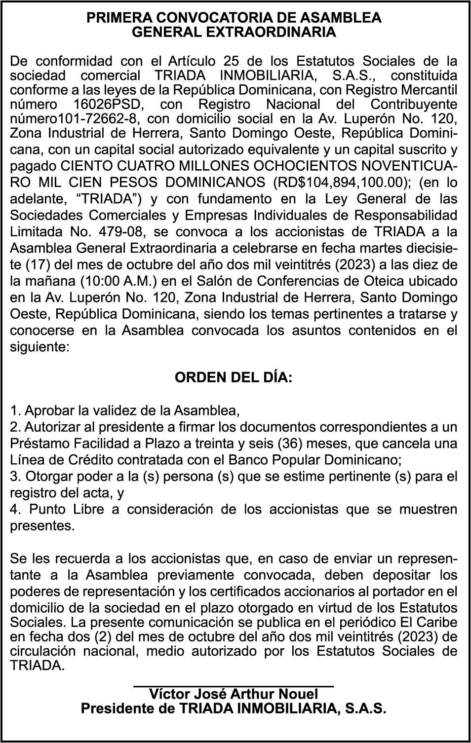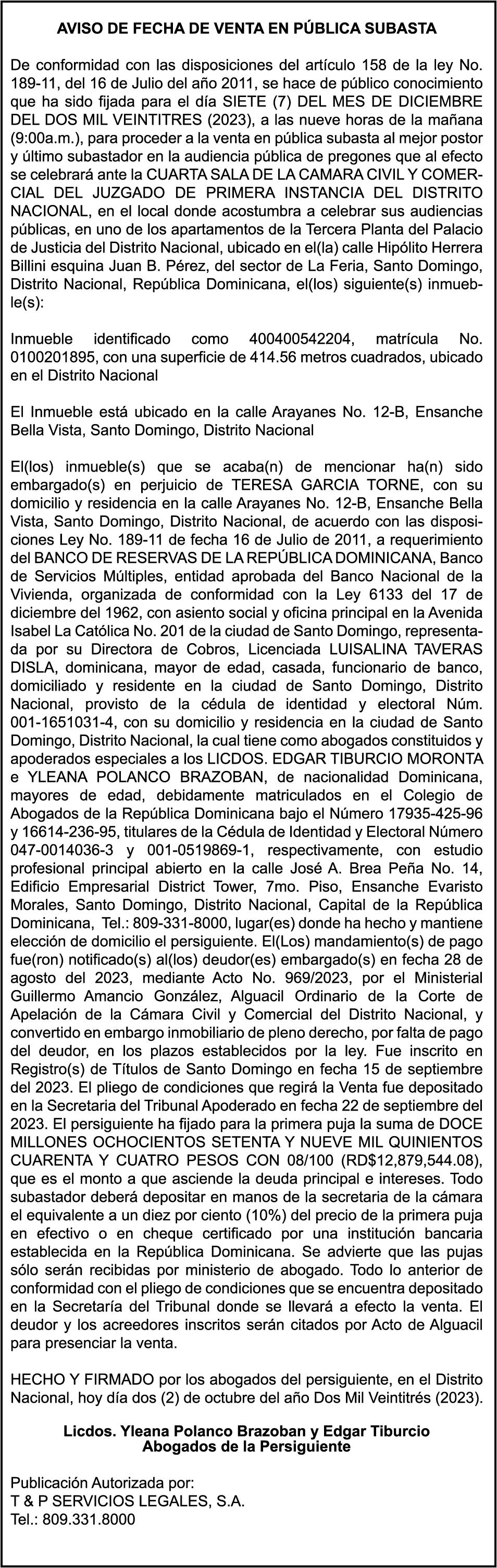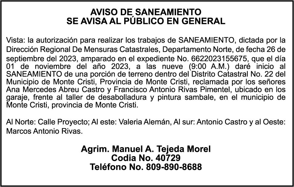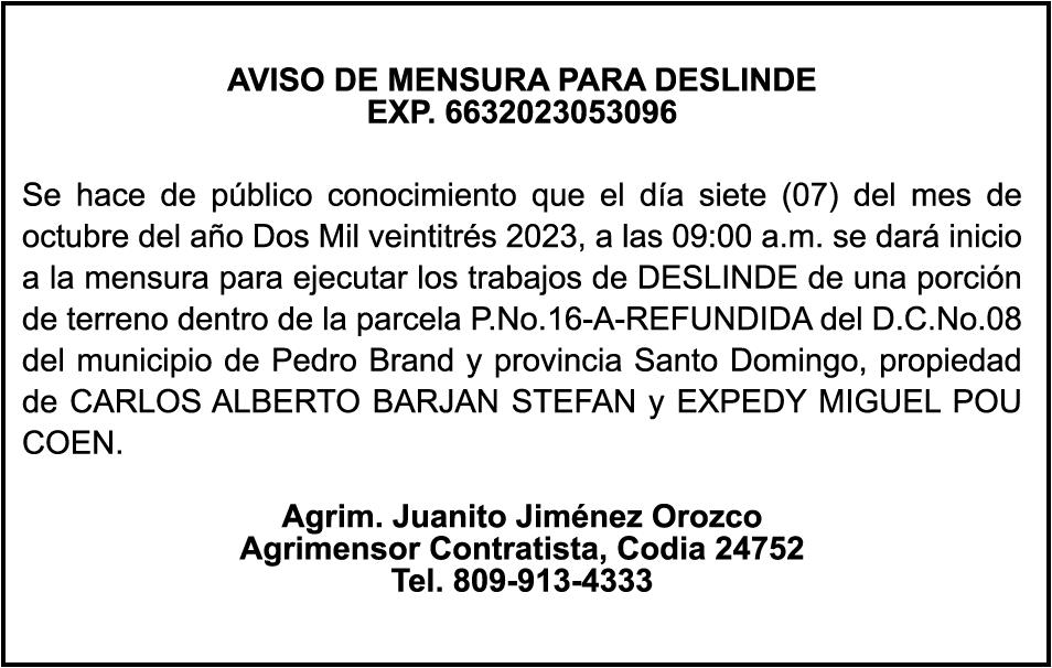 SE HACE de público conocimiento la pérdida de certificado de depósito número 827814757 emitido por Banco Popular Dominicano, S. A., a favor de FABIO LUIS GARCIA GUERRA Cedula de identidad y Electoral número 001-03753232, expedido en fecha 20 de mayo de 2022 por el monto de (US$10,040.23), más intereses generados a la fecha.