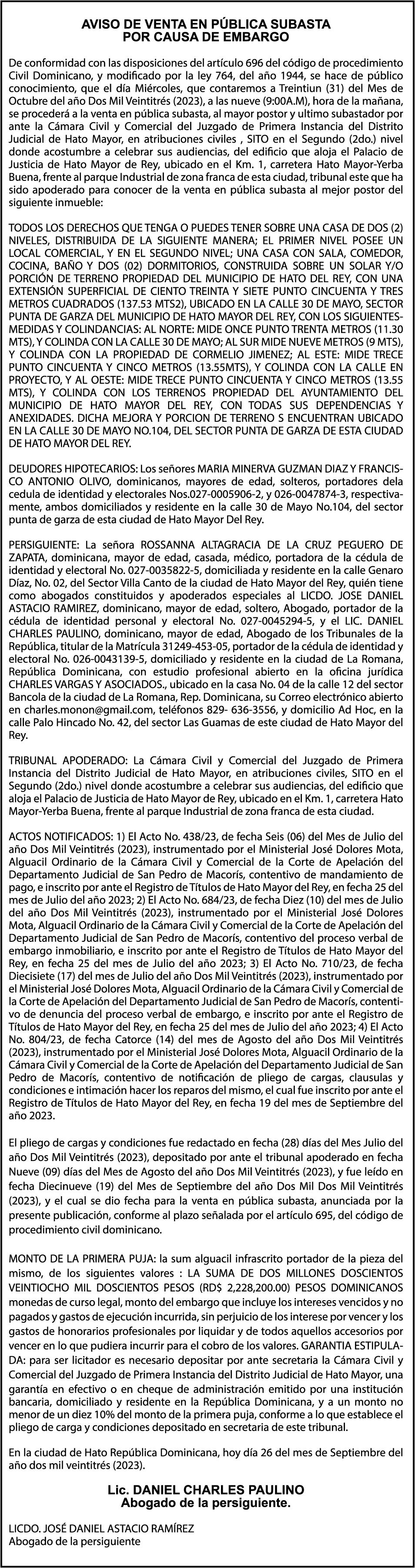 MD902501567, a nombre de JUAN OSIRIS PEGUERO SANTOS.