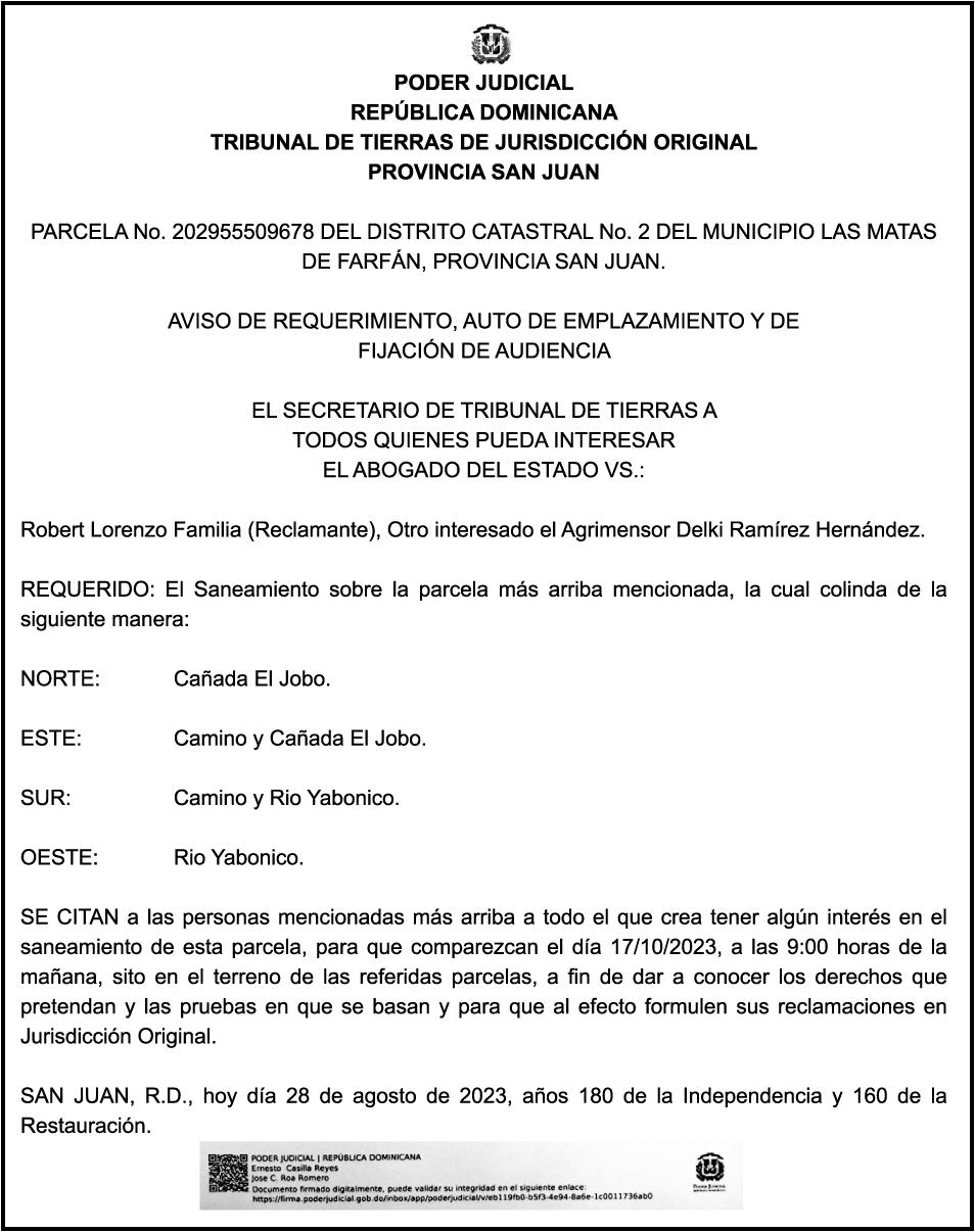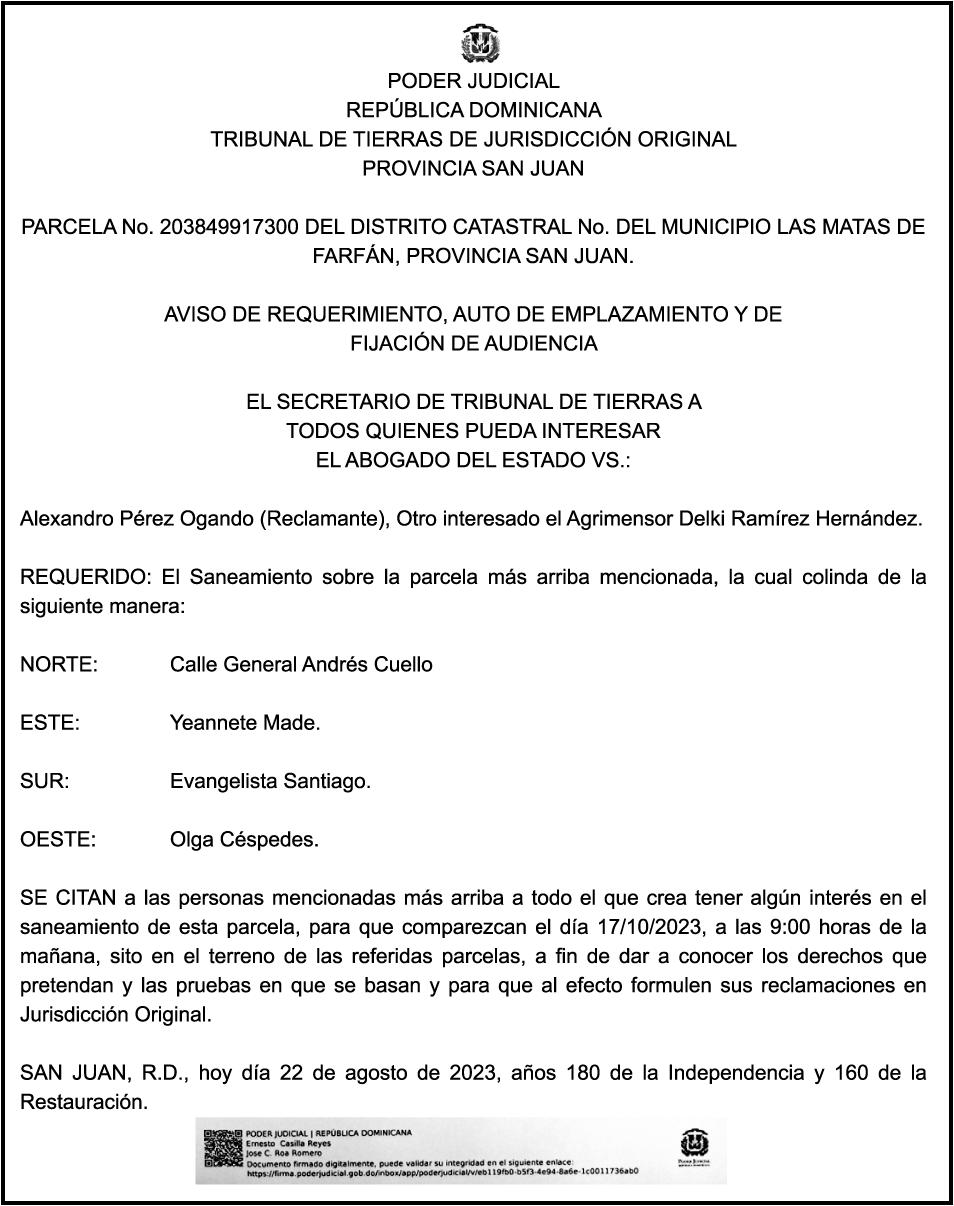 NO. 1000044072, en Higüey, con una extensión superficial (199.99 mts2) a nombre de RAMON ORTIZ SANTANA