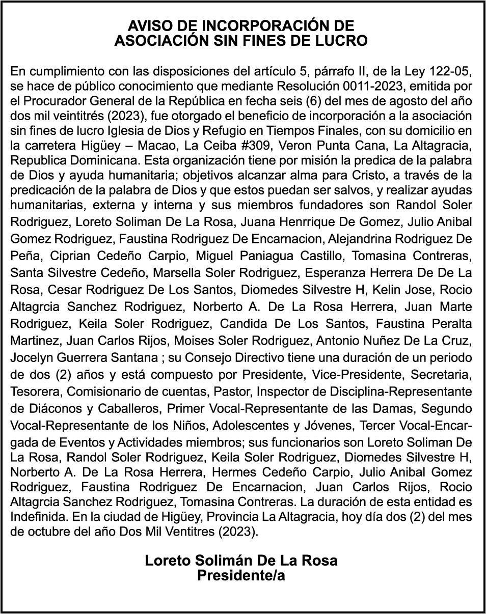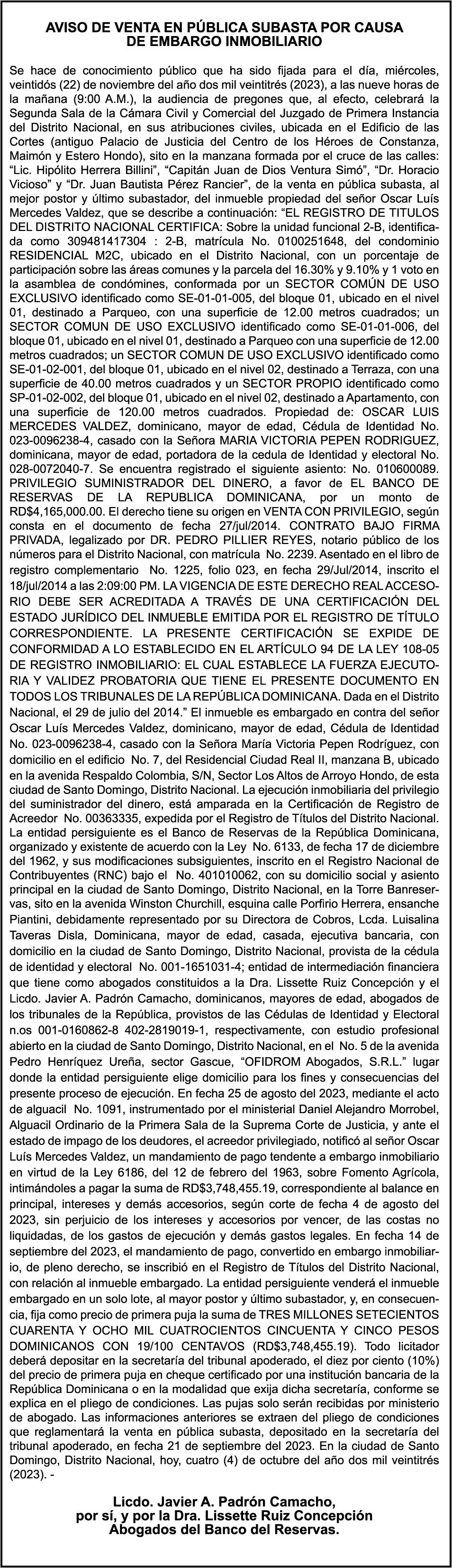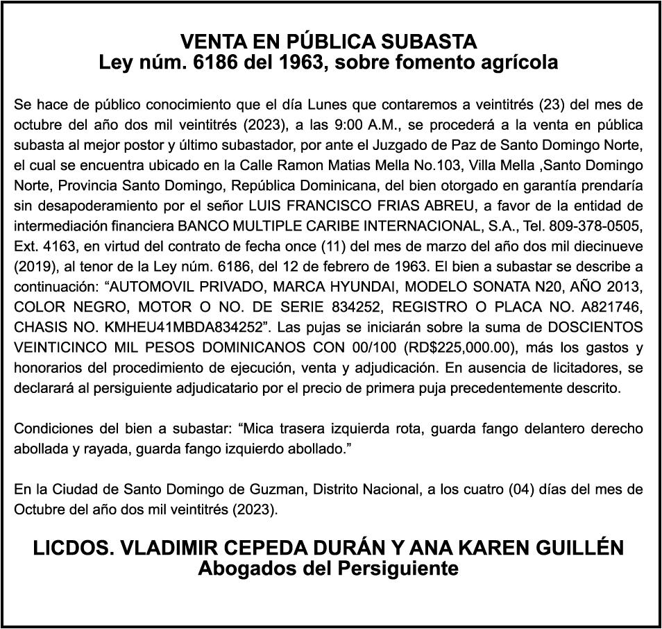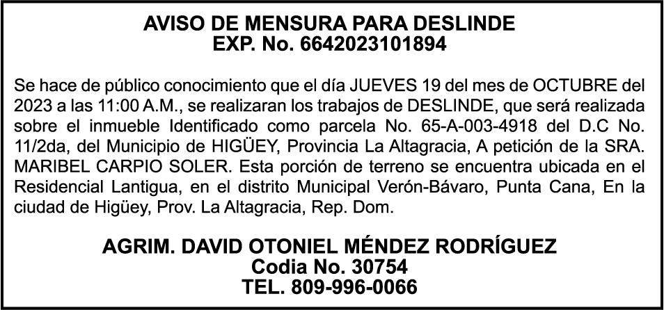 10. elCaribe, Miércoles 4 De octubre De 2023 LEGALES