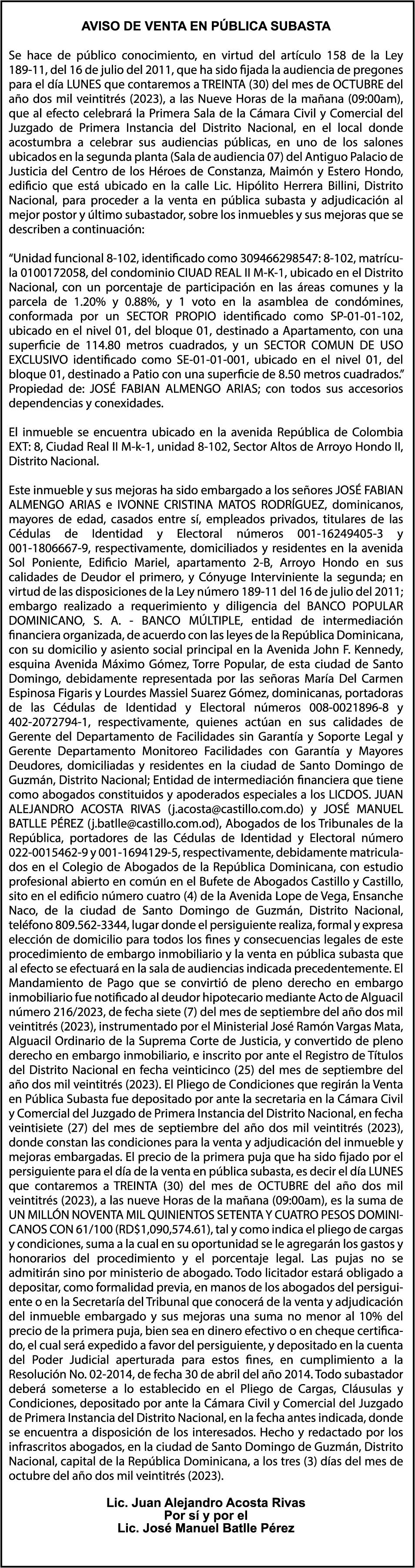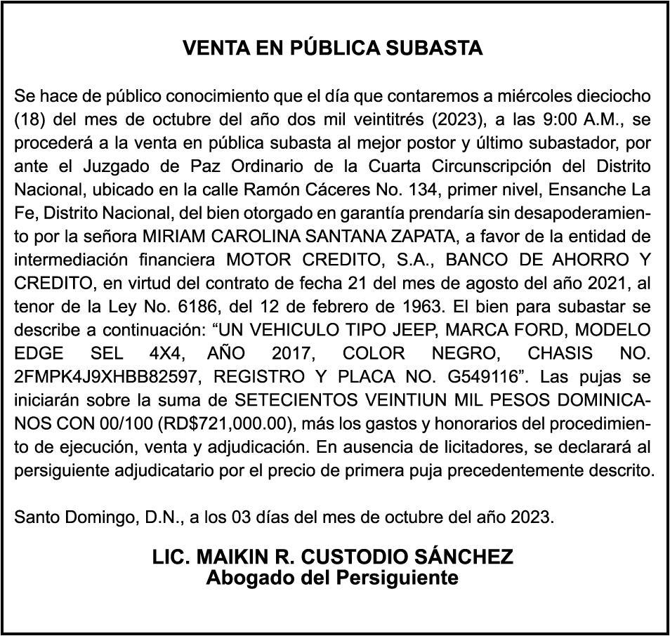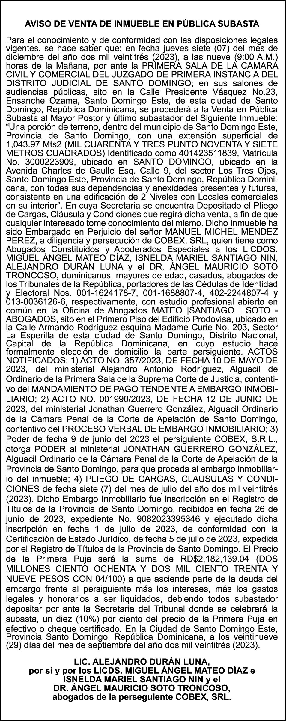 10. elCaribe, Miércoles 4 De octubre De 2023 LEGALES