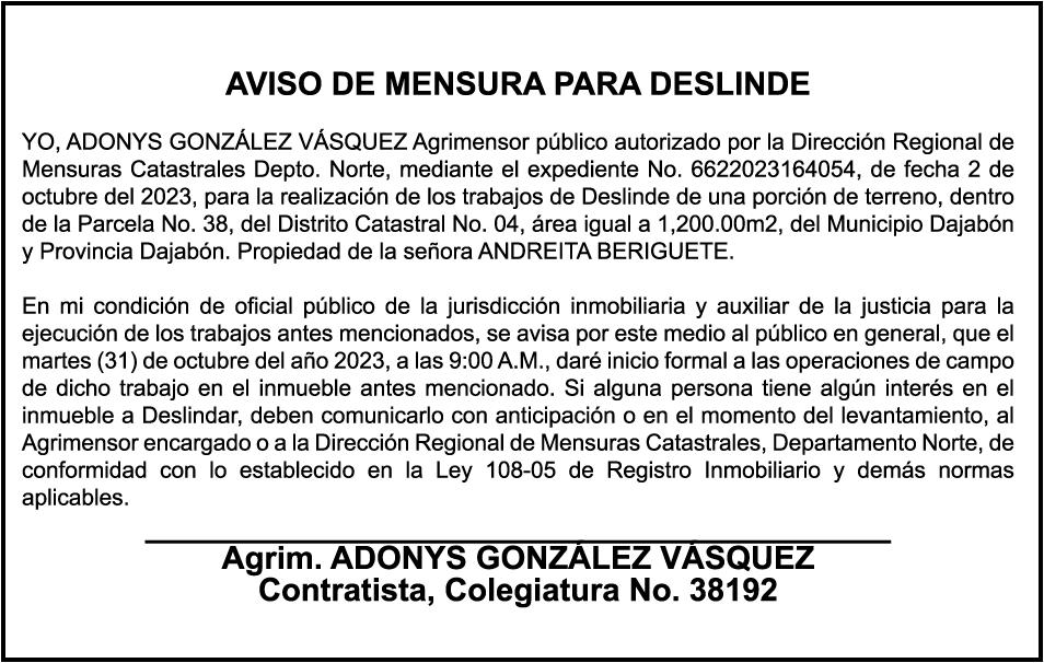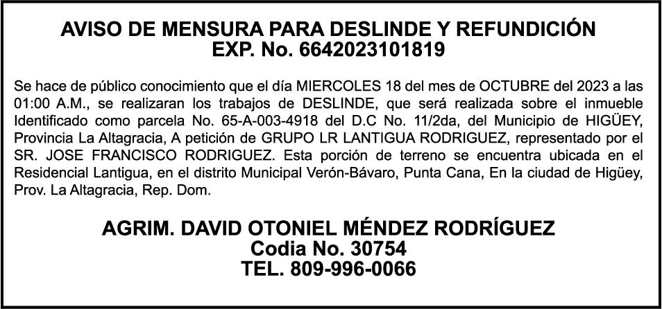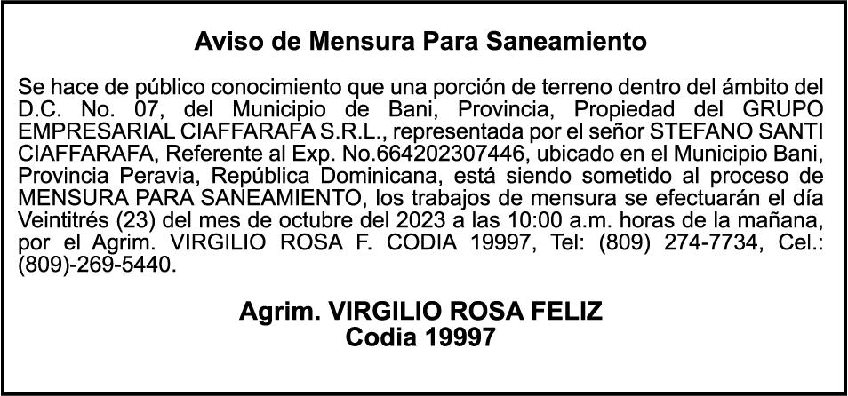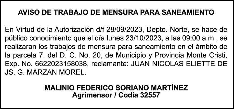 . 7 elCaribe, Miércoles 4 De octubre De 2023 LEGALES