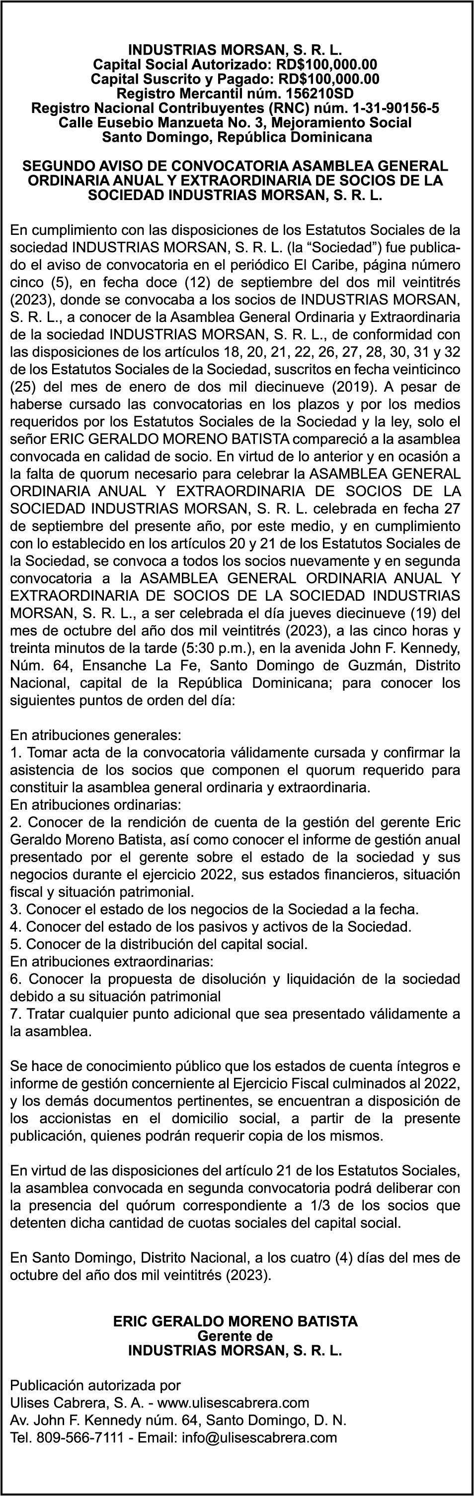 2. elCaribe, Miércoles 4 De octubre De 2023 LEGALES