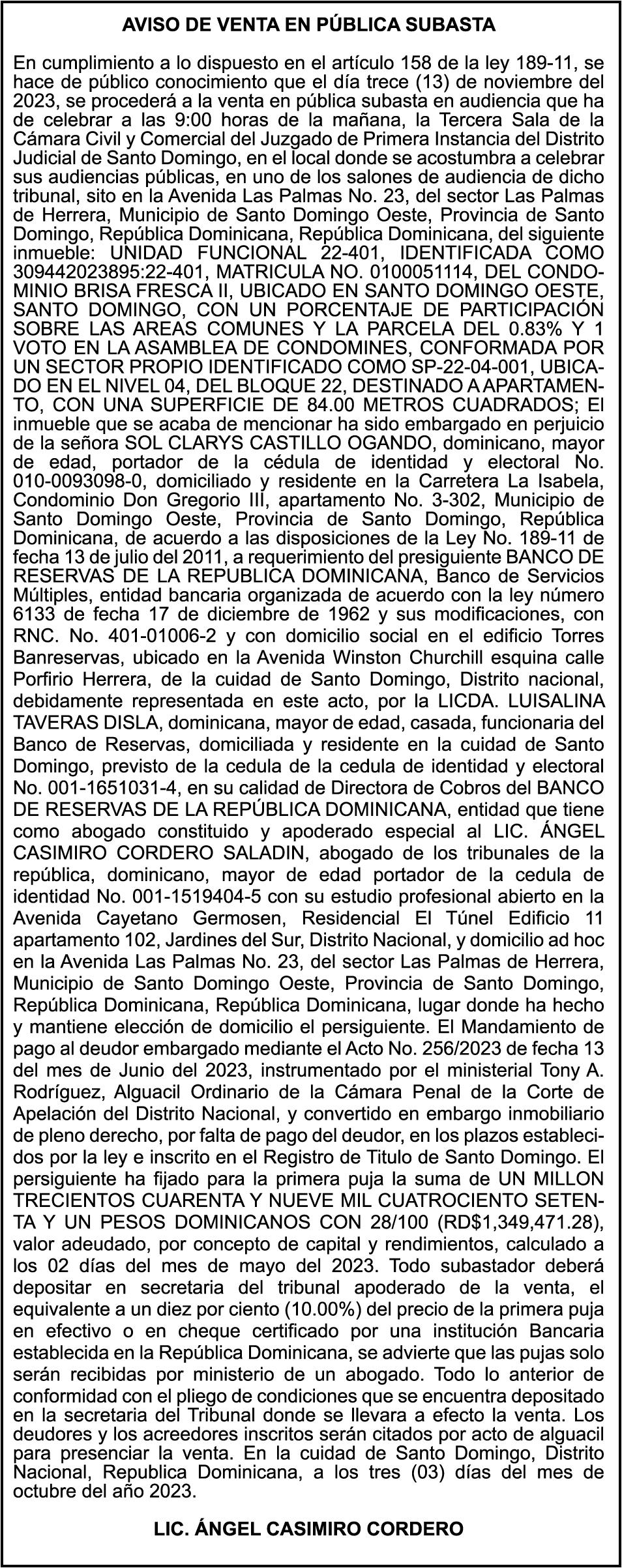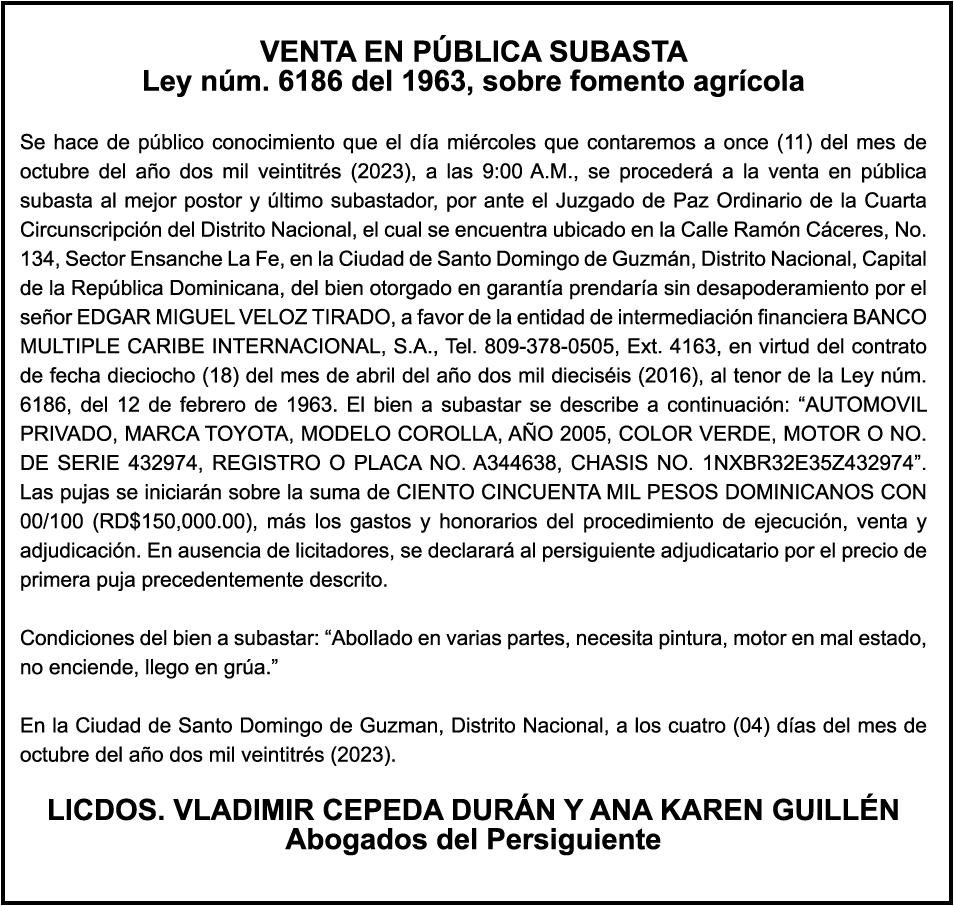 12. elCaribe, Miércoles 4 De octubre De 2023 LEGALES