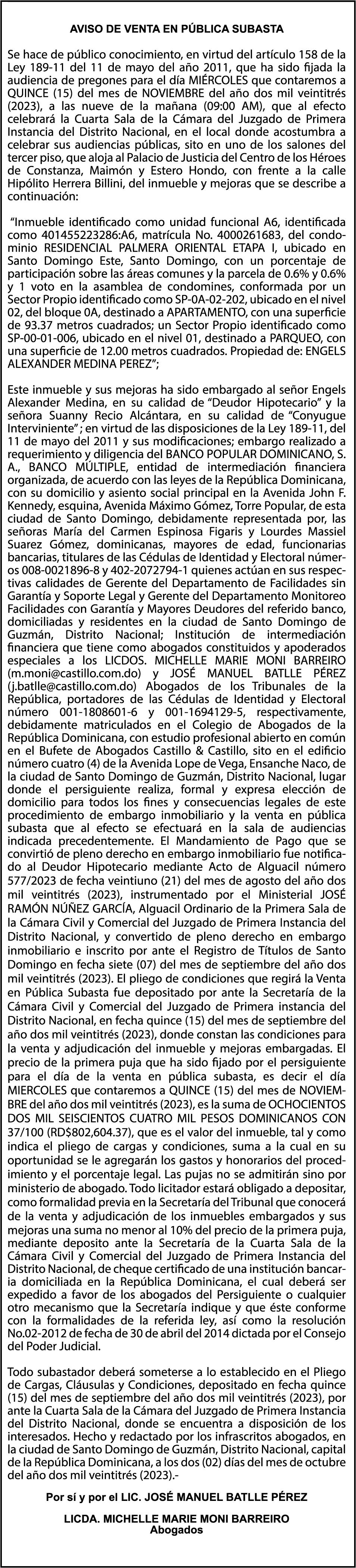 4. elCaribe, Miércoles 4 De octubre De 2023 LEGALES