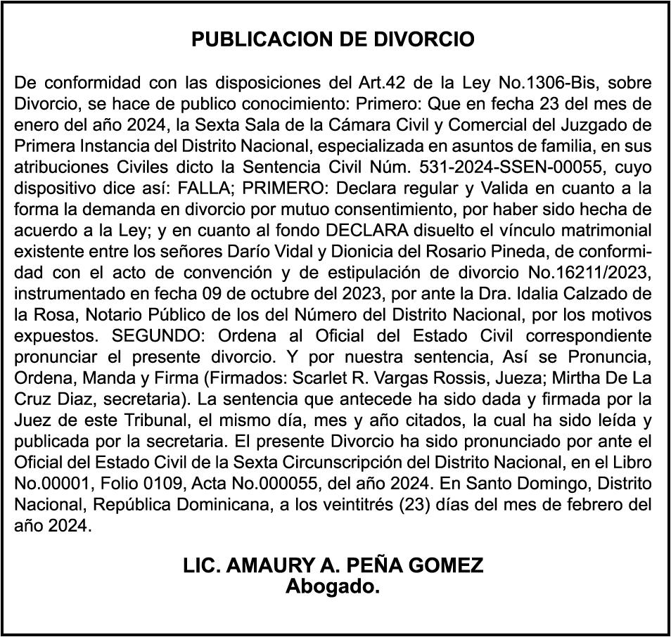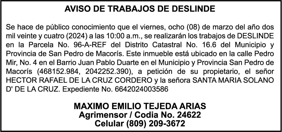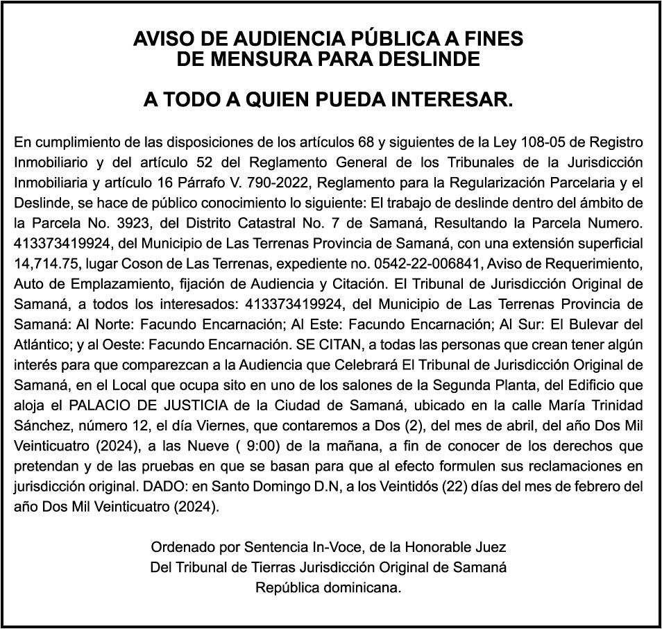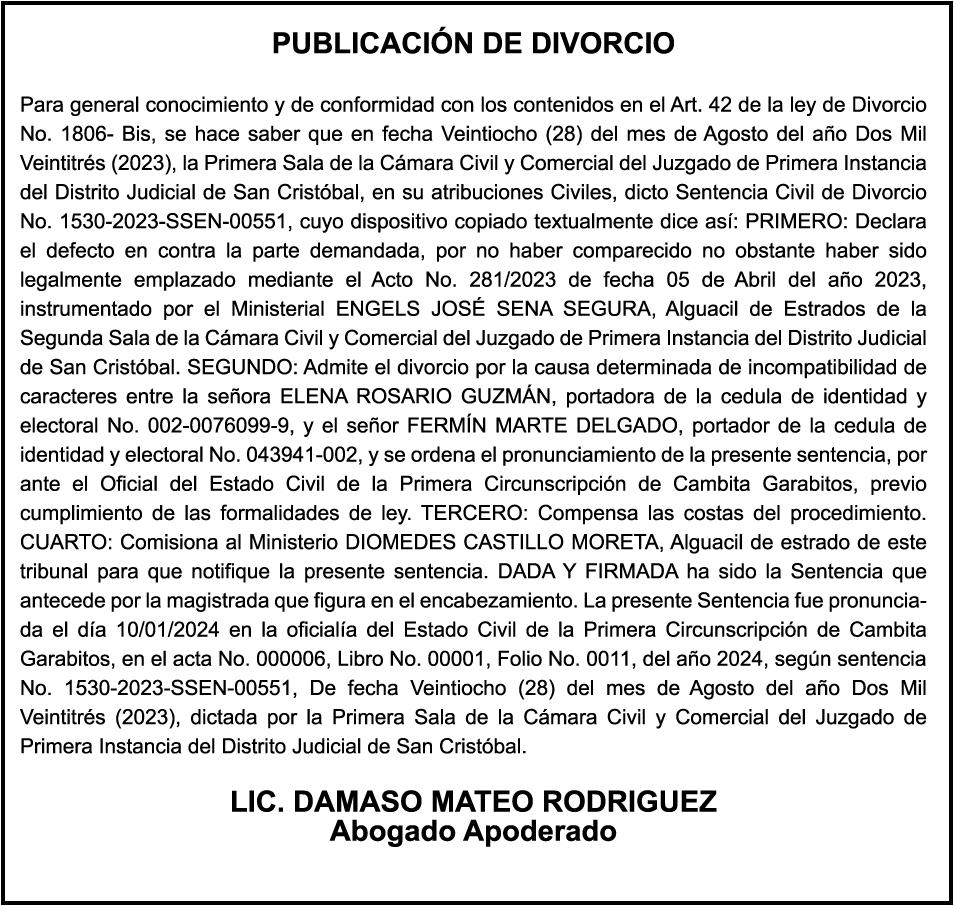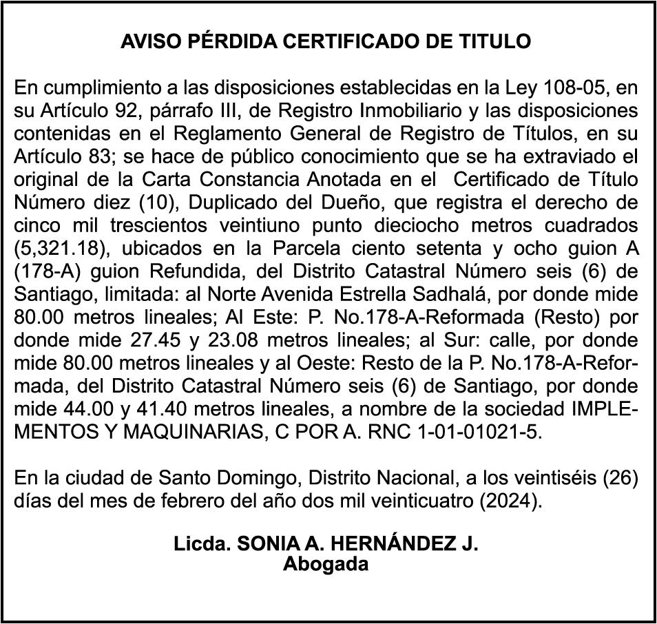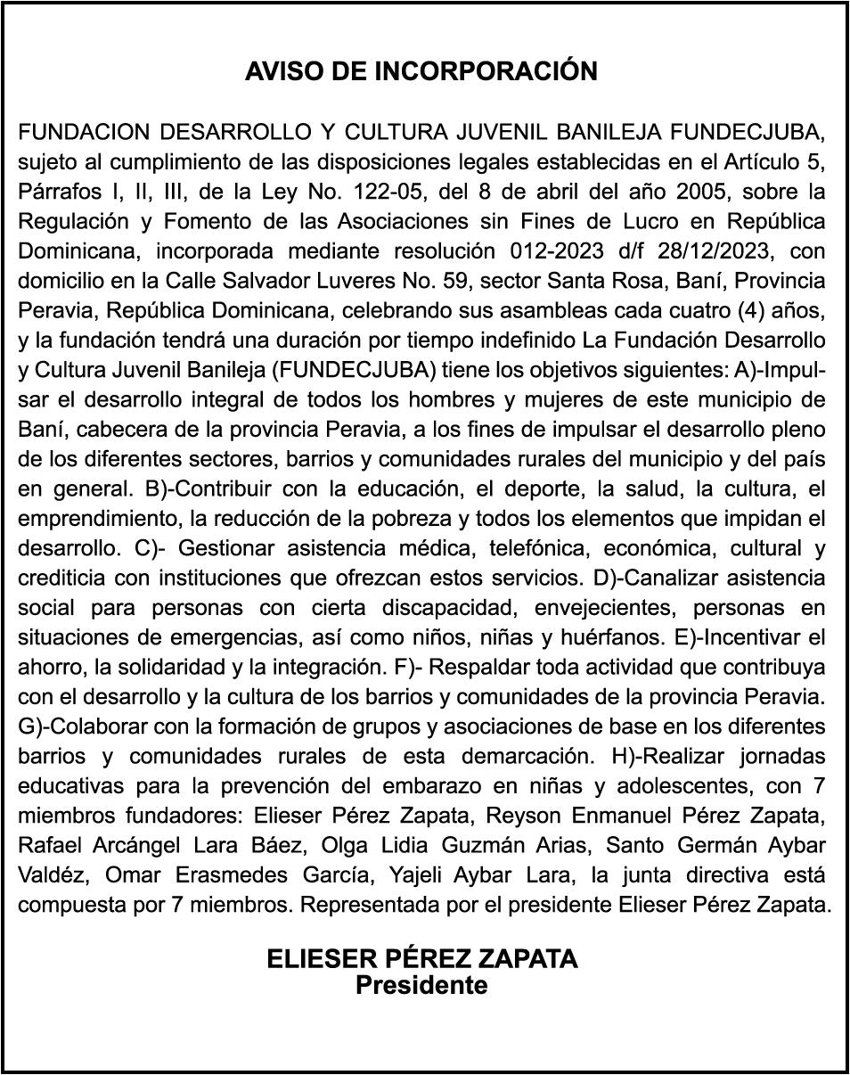 El clamor de la población, a través de los distintos sectores que se han pronunciado, compromete al Senado y Cámara de Diputados a incluir en los 150 días de labor legislativa una revisión fundamental y urgente de la Ley 1-24, en especial de sus artículos 9,11 y 26.