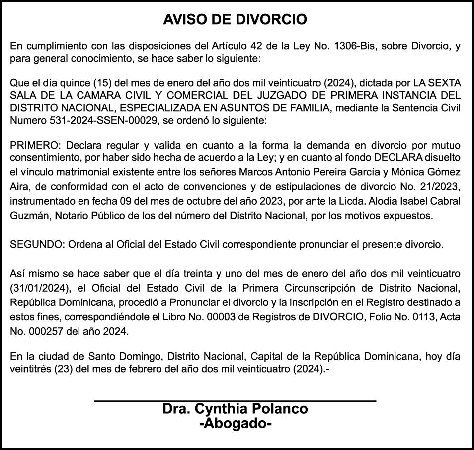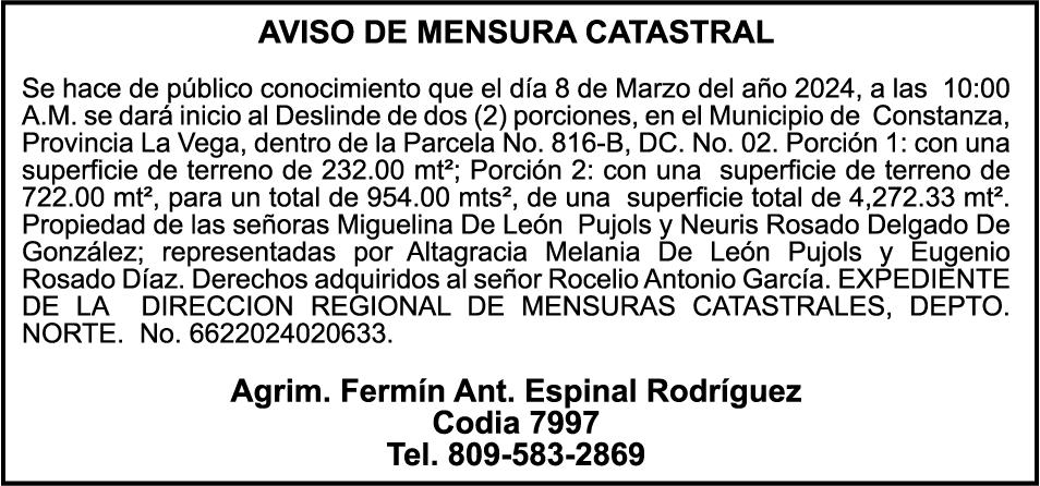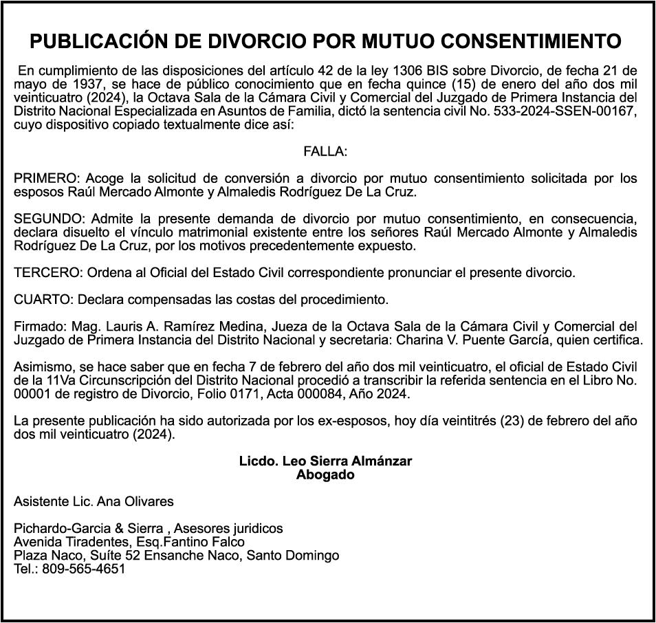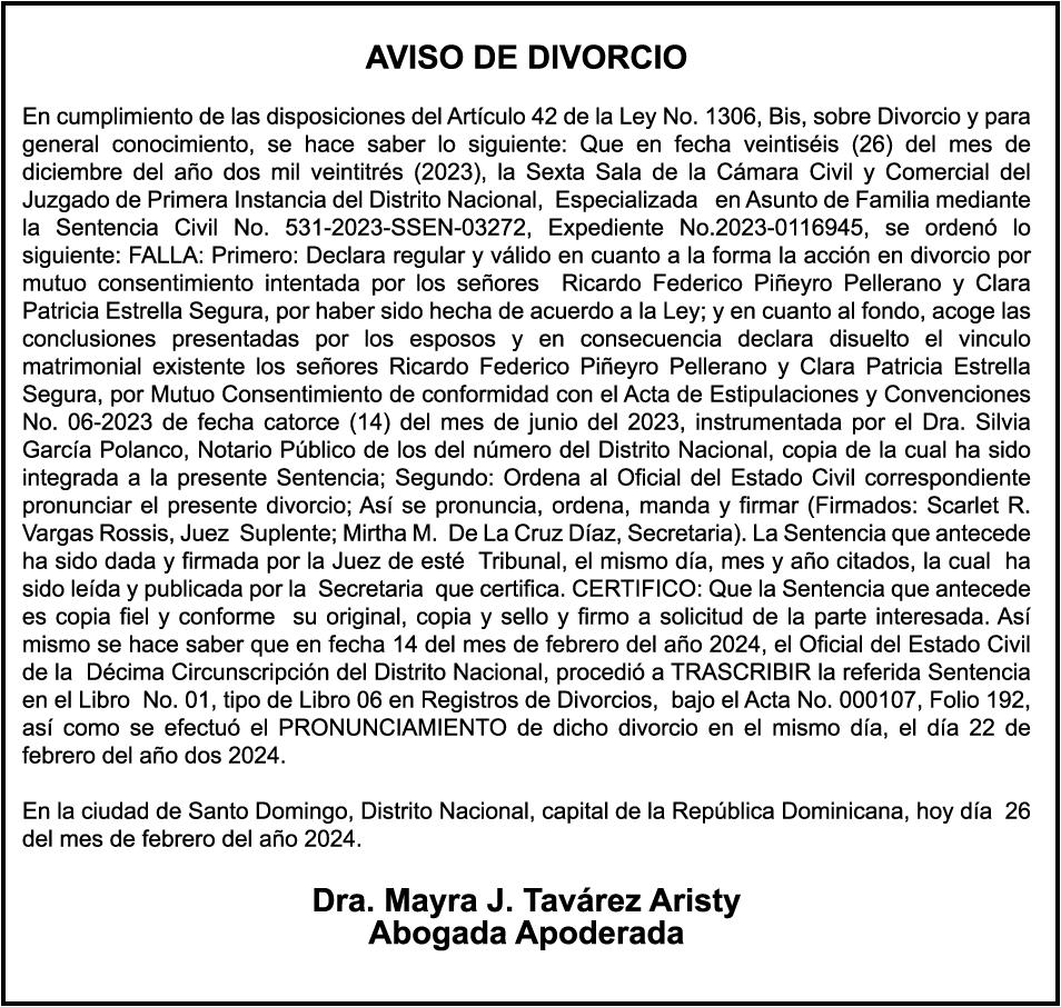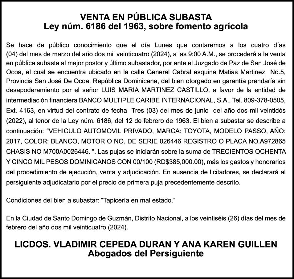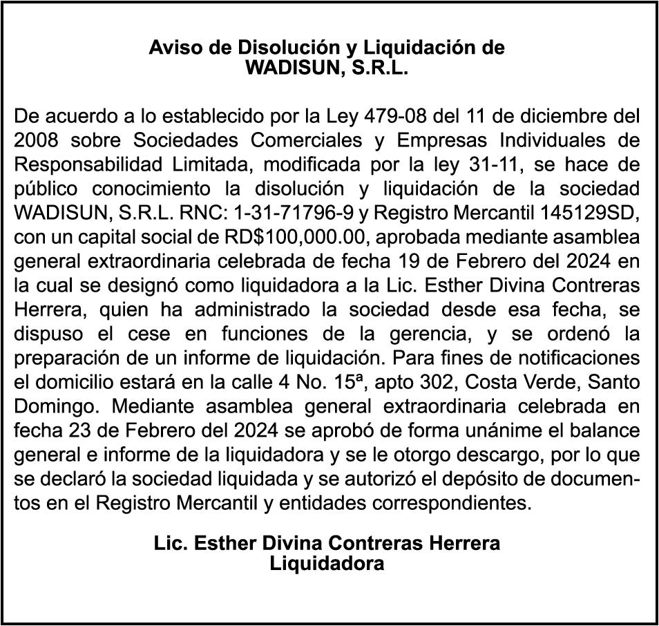 El clamor de la población, a través de los distintos sectores que se han pronunciado, compromete al Senado y Cámara de Diputados a incluir en los 150 días de labor legislativa una revisión fundamental y urgente de la Ley 1-24, en especial de sus artículos 9,11 y 26.