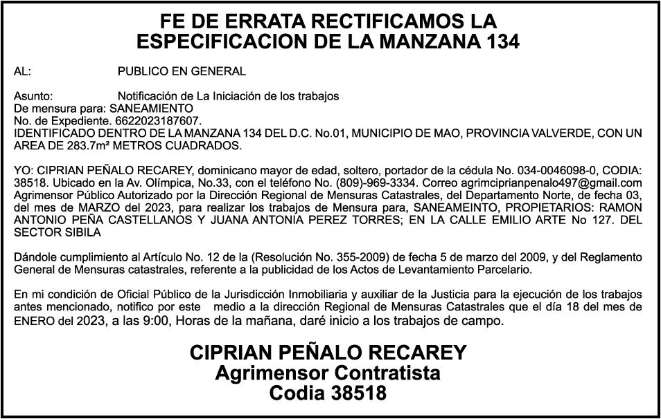 CONTRERAS JIMENEZ, portadora de la Cédula de Identidad y Electoral número 001-1689096-3, certificado expedido en fecha 18 de julio de 2023 Por el Monto (RD$3,080,130.21), más intereses generados a la fecha.