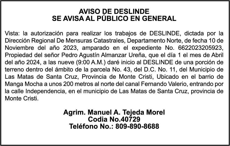 SE hace de público conocimiento la pérdida de certificado de depósito número 821564051 emitido por Banco Popular Dominicano, S. A., a favor de LUIS RIGOBERTO TAVAREZ CALDERON, portador de la cedula de identidad y electoral no. 0010243807-4, certificado expedido en fecha 21 de Abril de 2021 Por un Monto de (US$101,727.57), más intereses generados a la fecha.