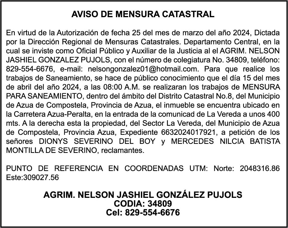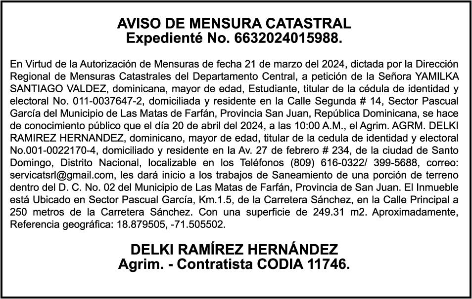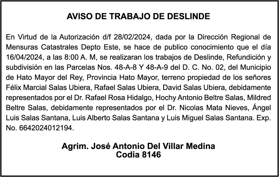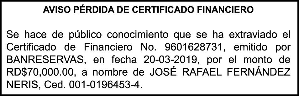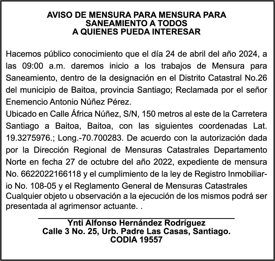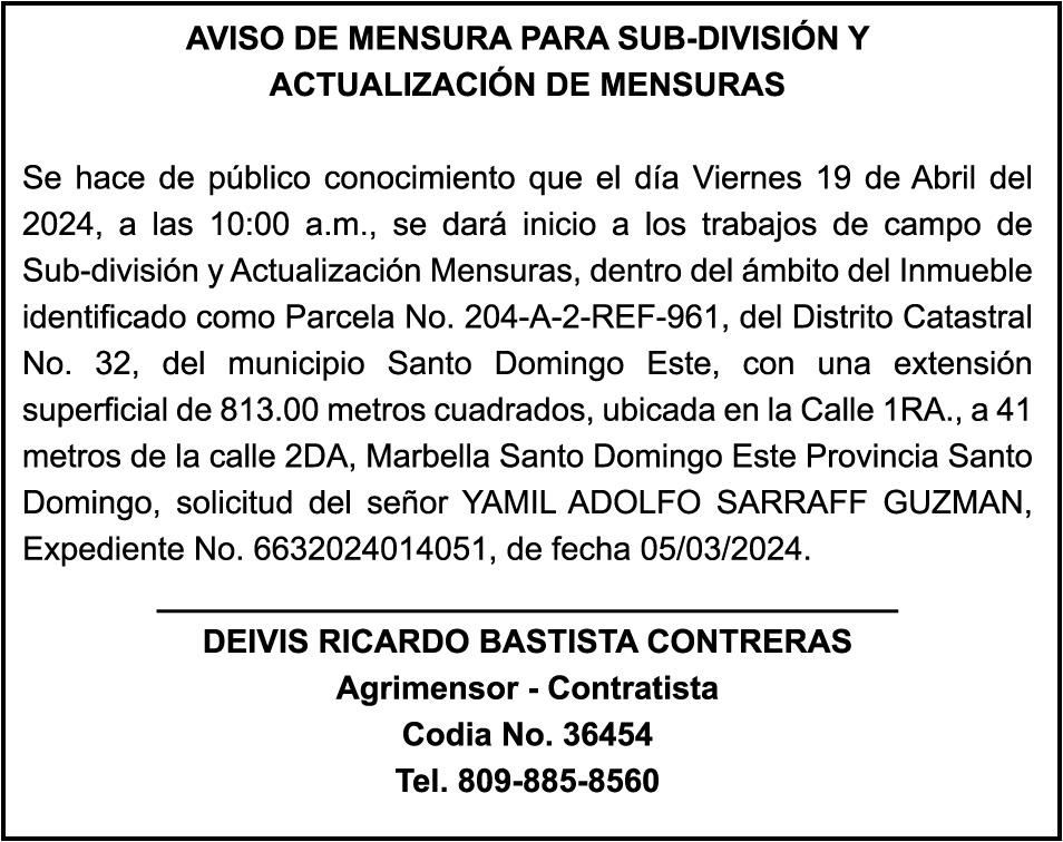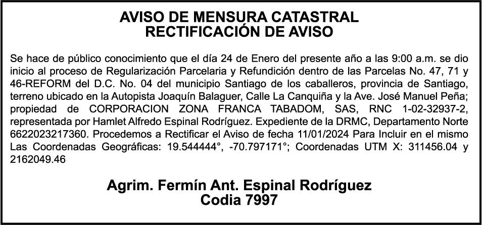Perdida de Certificado de título No. 2000-175, ampara la parcela No.1-B-1-SUBD171, del D.C 37/1ra, con una extensión de 00HA, 02 AREAS, 22.50