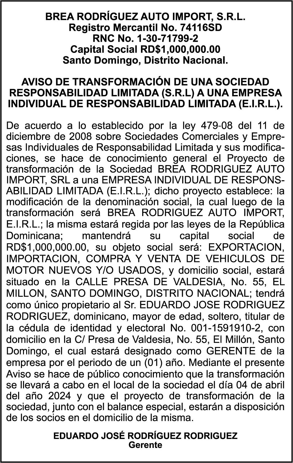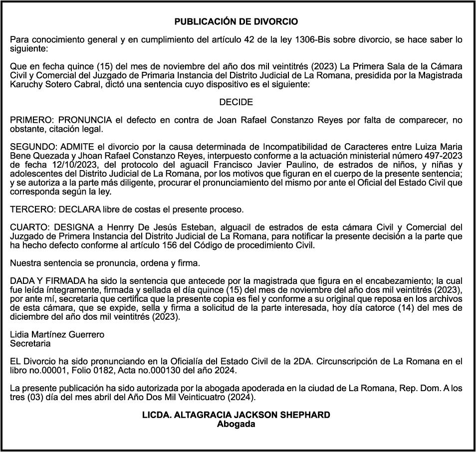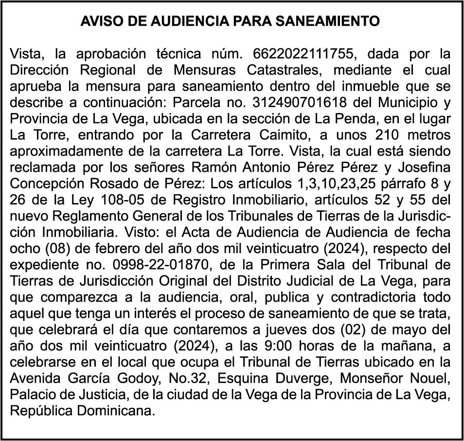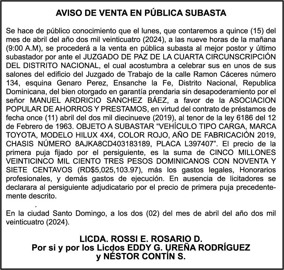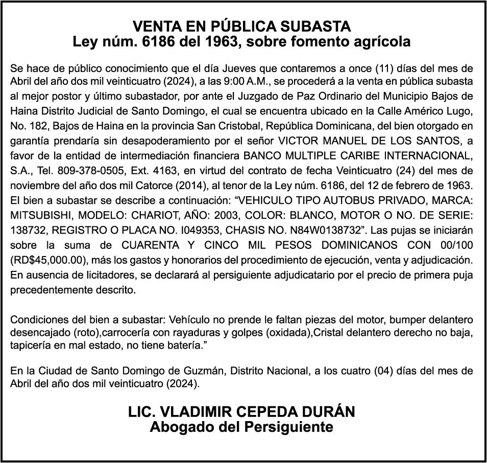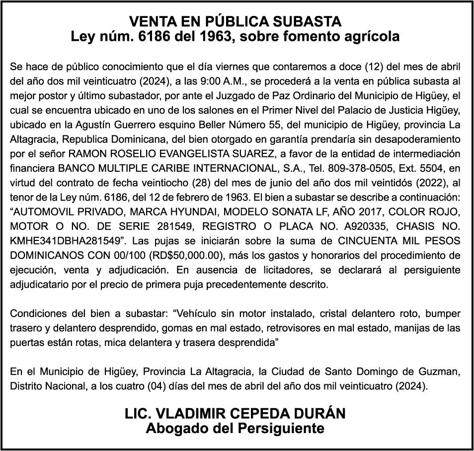 PERDIDA DE MATRICULA Veh. Carga DAIHATSU, Modelo HIJET, Color blanco, Año 1990, Placa L135223, Chasis S81P058437, a nombre de JUAN EDILIO TAVERAS TAVERAS, Ced. 03103736645.