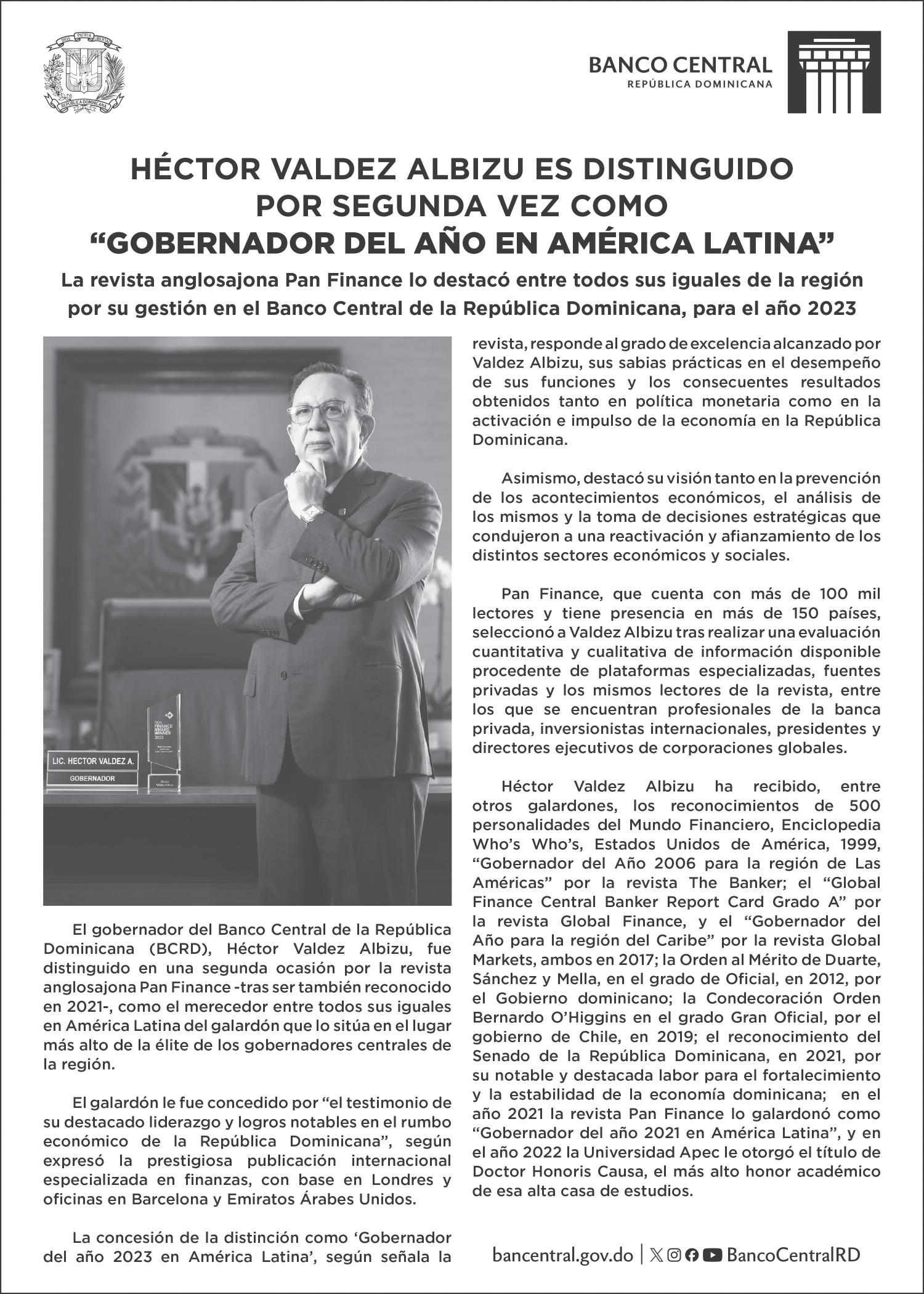 HÉCTOR VALDEZ ALBIZU, GOBERNADOR DEL AÑO DE AMÉRICA LATINA