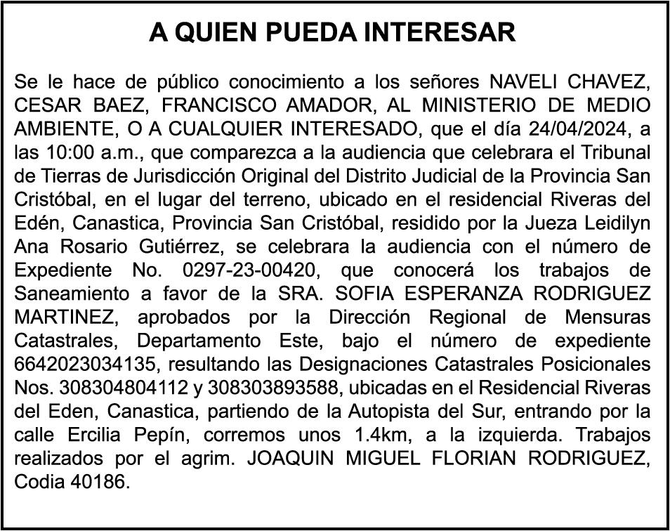 Centiáreas, a nombre de Modesta Rodríguez Castillo y Juan Peña, ubicado en Higuey, La Altagracia