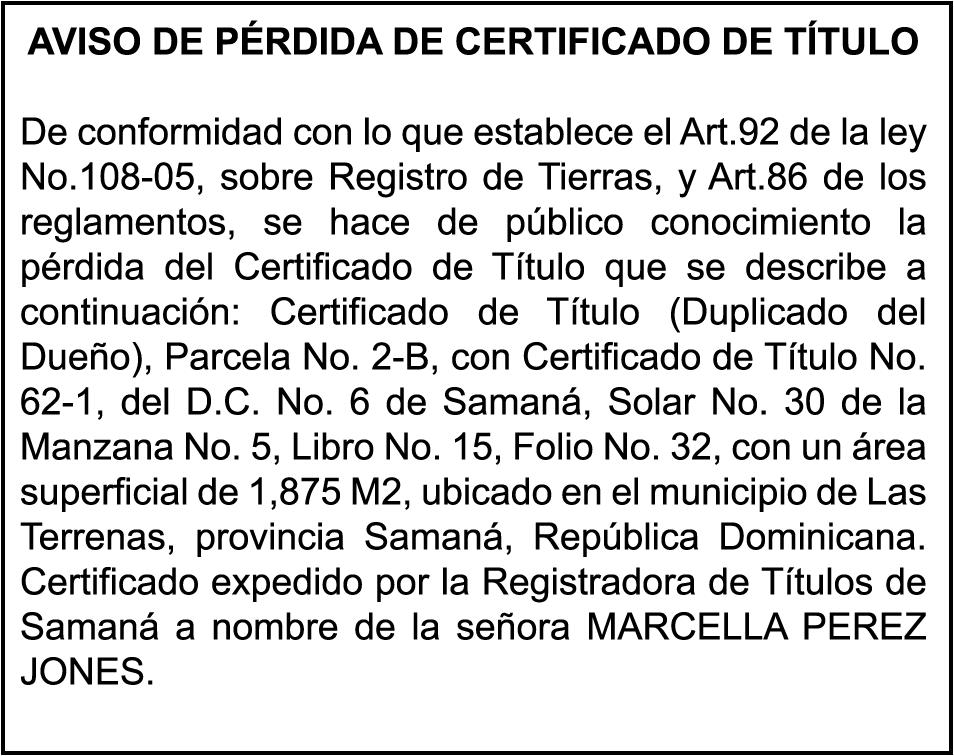PERDIDA DE CONTRATO DE ARRENDAMIENTO DE SOLAR No. 19, Manzana No. 57, Ubicado en la calle, GASTON F. DELIGNE, No. 109, de la ciudad de La Romana, Rep. Dominicana a nombre del Sr. NICOLAS SCOTT.