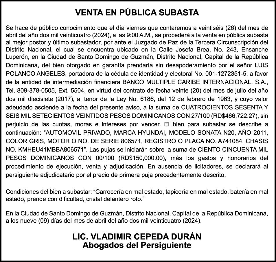 Del Automovil, Placa A618108, Chasis KMHEU41MBAA771356, Marca HYUNDAI. Modelo SONATA N20, Color BLANCO. AñO 2010,a nombre de EVELIN