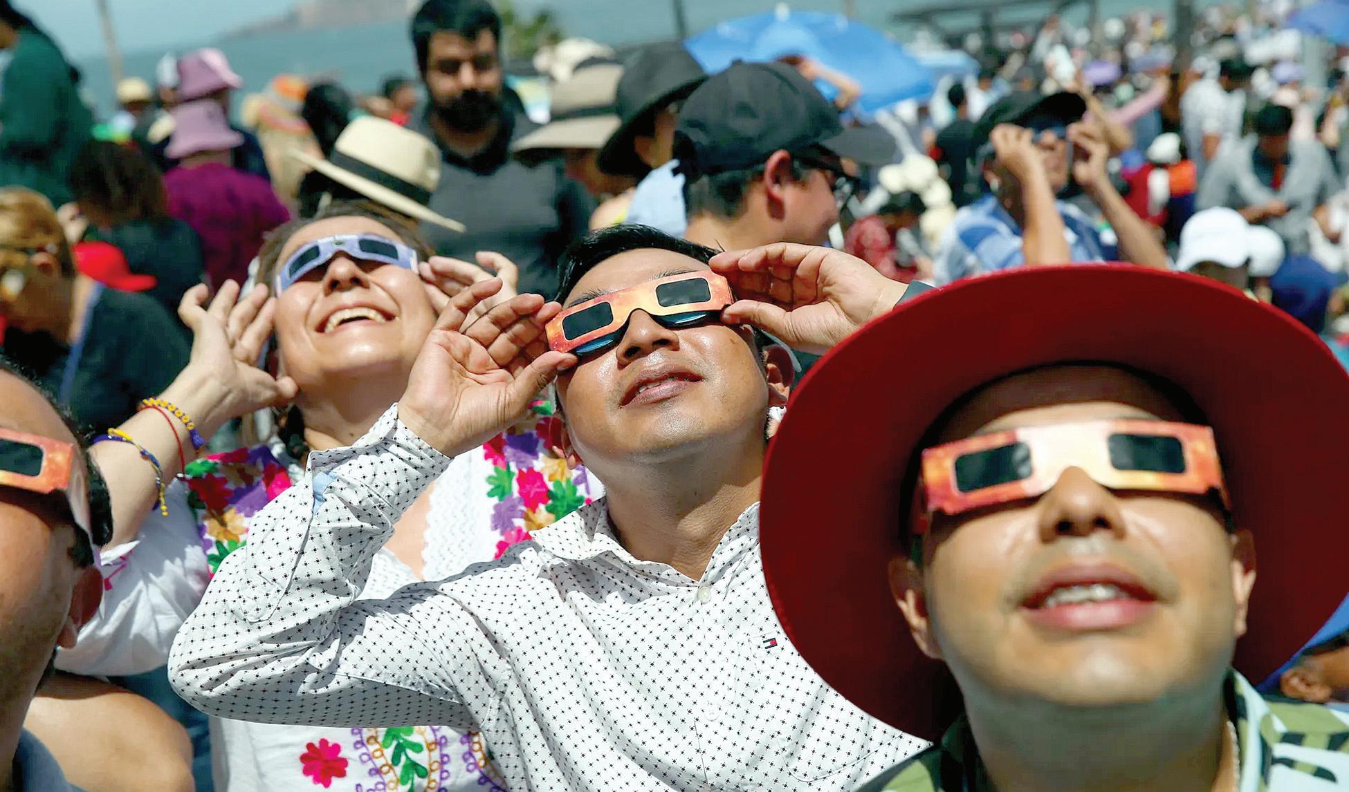 El eclipse solar total, que atravesó ayer toda Norteamérica, se convirtió en una atracción, con los observatorios, museos, oficinas y hogares llenos de personas y turistas para presenciar el fenómeno astronómico. P.19