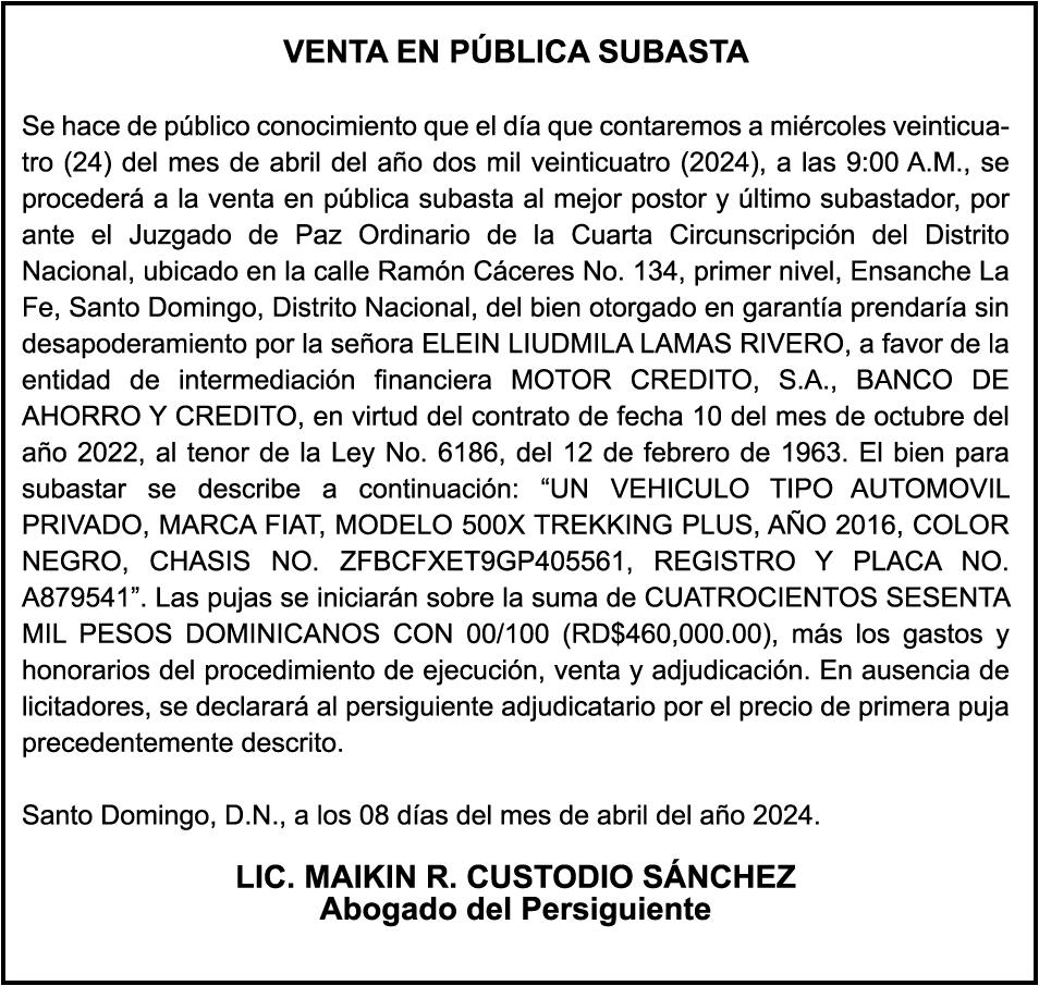PERDIDA DE MATRICULA DEL VEHICULO SUPER TUCAN