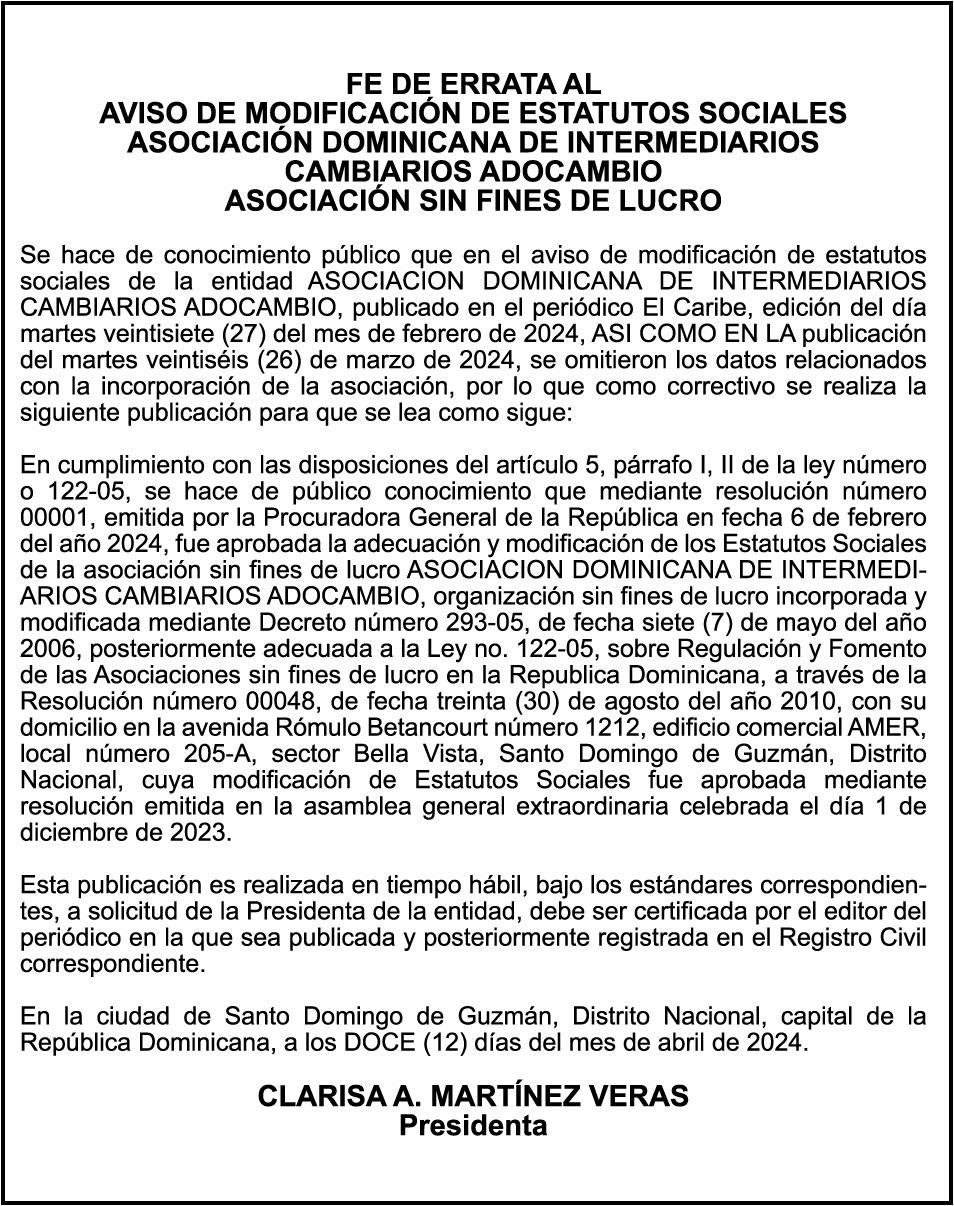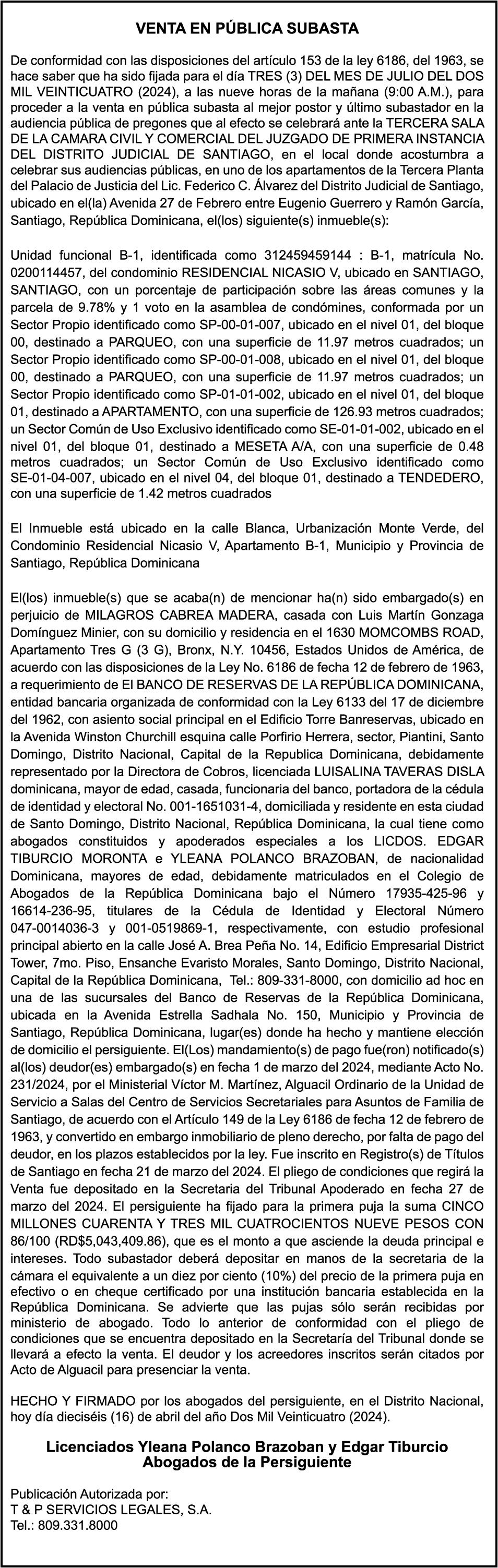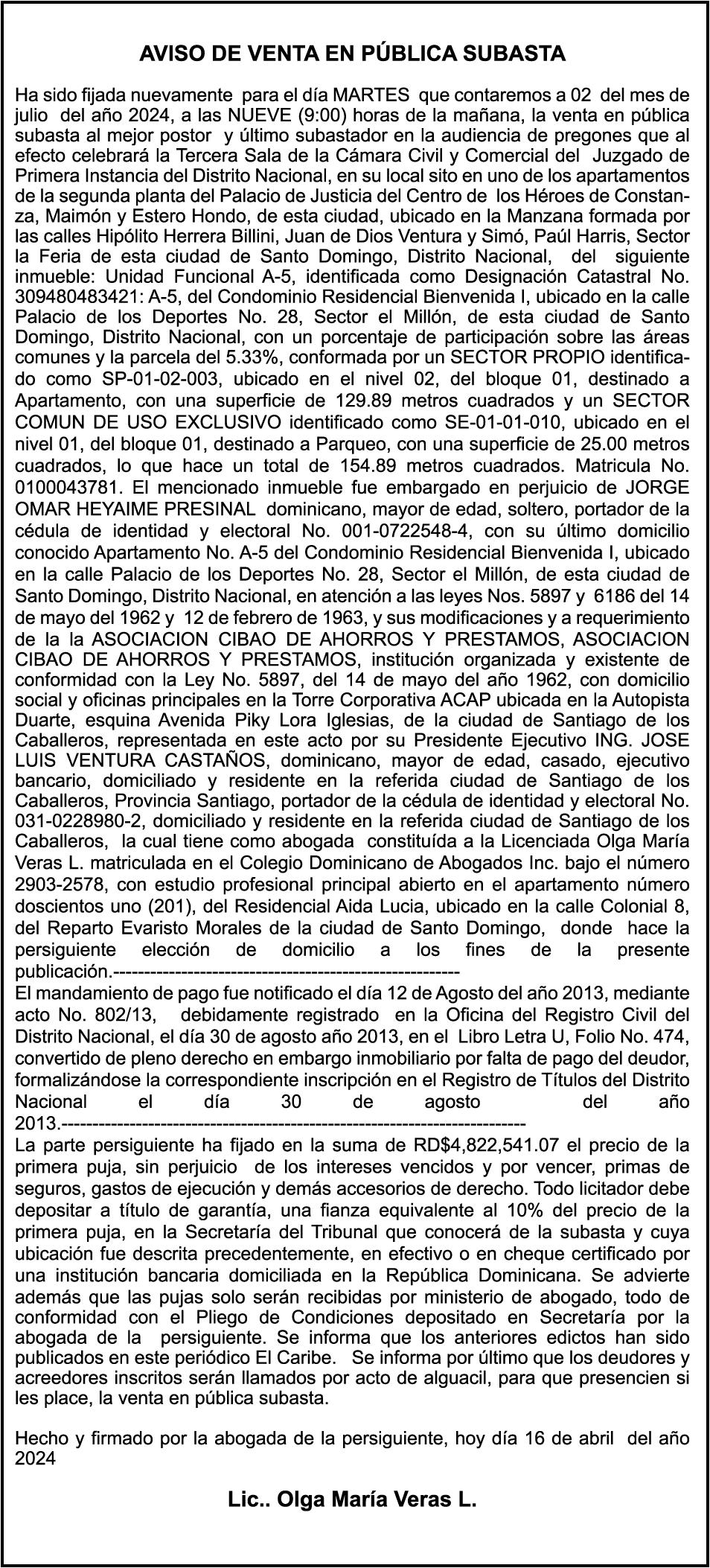 . 7 elCaribe, Martes 16 De abril De 2024 LEGALES