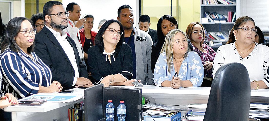 El director de elCaribe, Nelson Rodríguez, se dirige al personal del periódico, junto a Marianela Romeu, directora comercial; Amelia Duluc, encargada de recursos humanos , Carolina Cruz, administradora; Frank Camilo, director de CDN Deportes, y Alba Nely Familia, directora de CDN. P.12 Y 33
