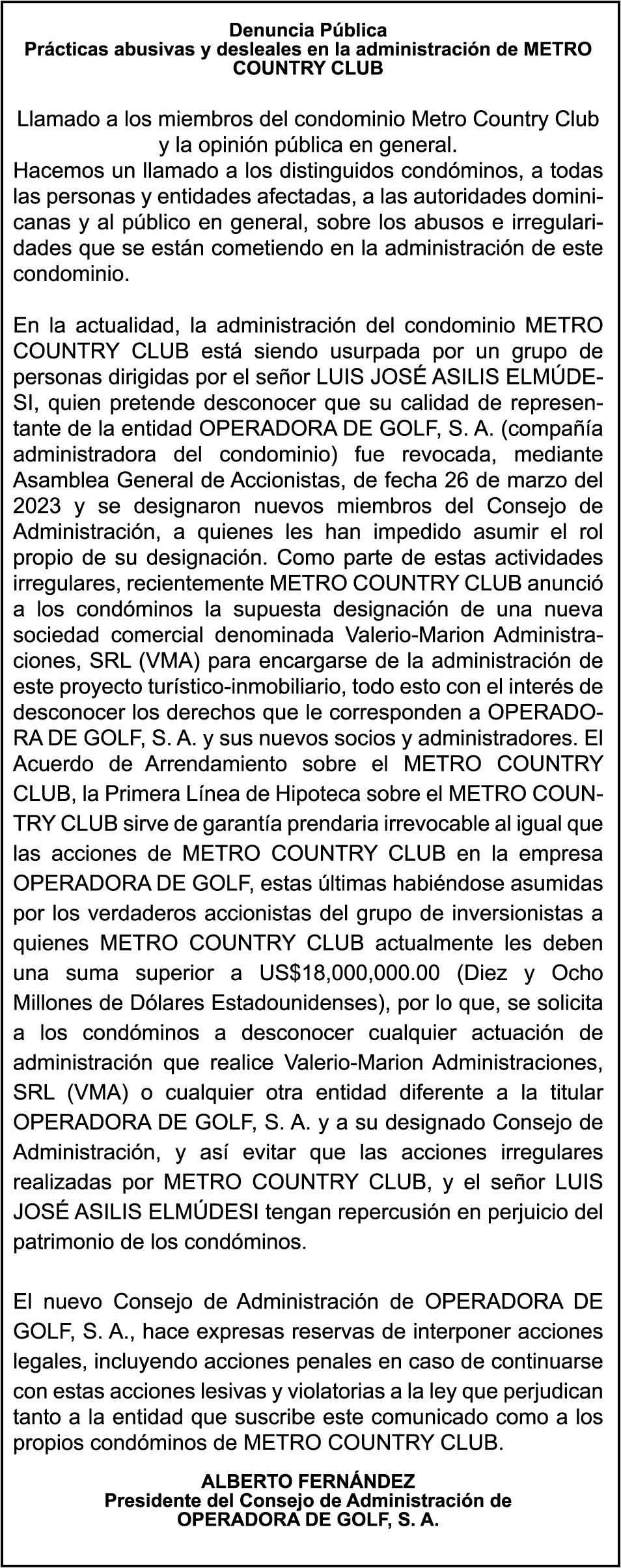 El presidente del Codue criticó, a su vez, a la oposición que, a su juicio, se ve rendida “como que todo se perdió”. Dijo que estos están demostrando que hay una derrota colectiva, pero entiende tienen la oportunidad de levantarse “A pesar del transfuguismo, y de esa migración que hay de un partido a otro, todavía tienen la oportunidad porque estamos a semanas de las elecciones, pero tienen que hacer un trabajo muy audaz y sistemático”, apuntó. l D. QUEZADA