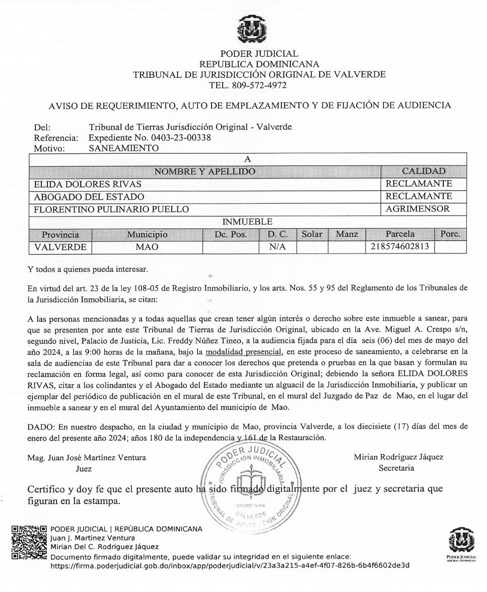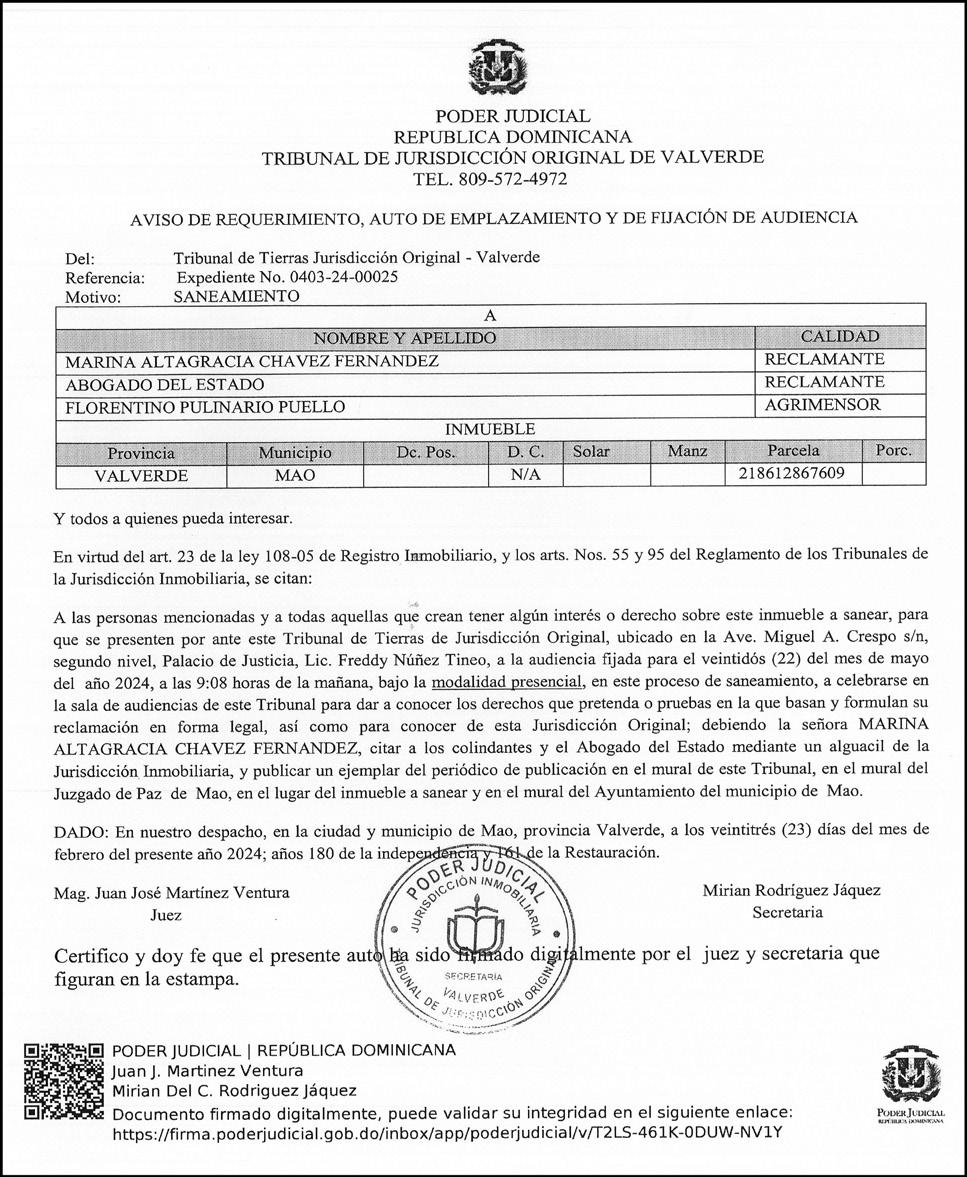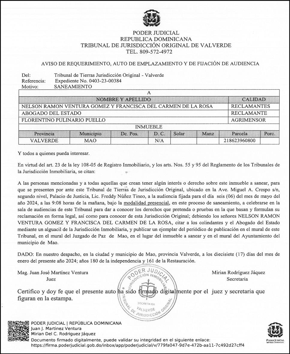 La Vega. Una jueza del Juzgado de la Instrucción de Constanza, impuso tres meses de prisión preventiva en contra dos hombres señalados como los autores de dar muerte al ambientalista Francisco Ortiz.