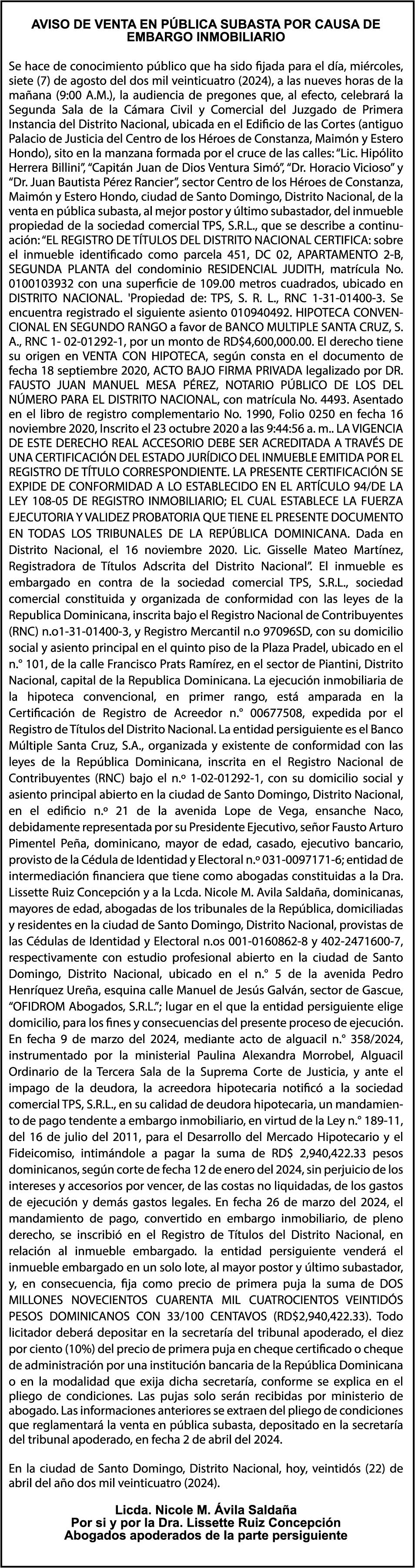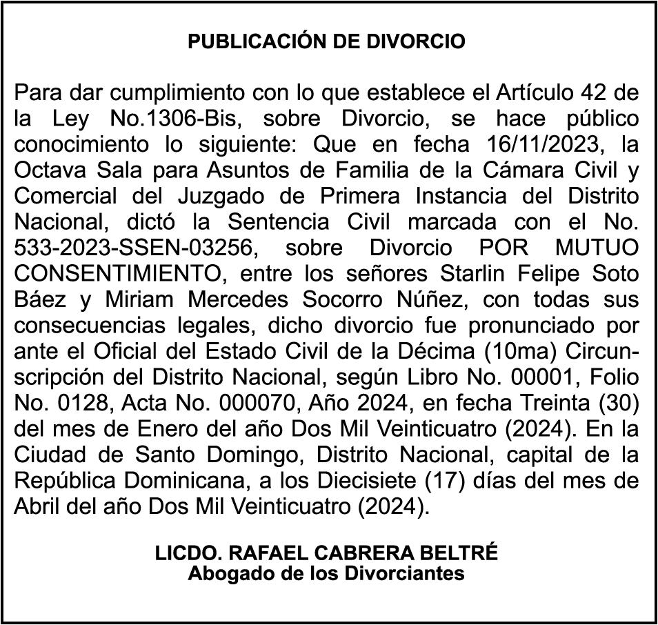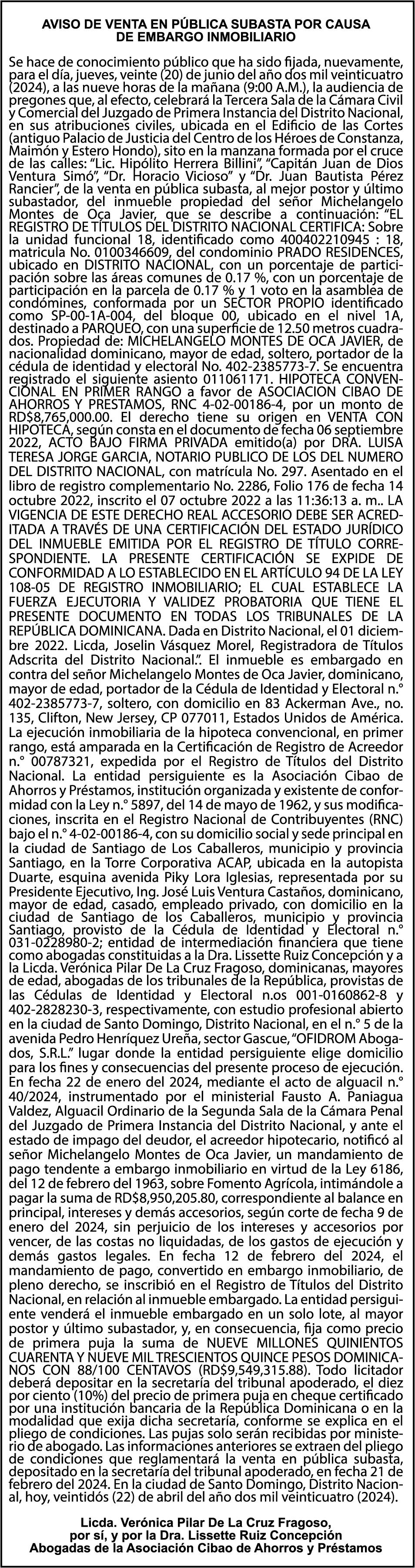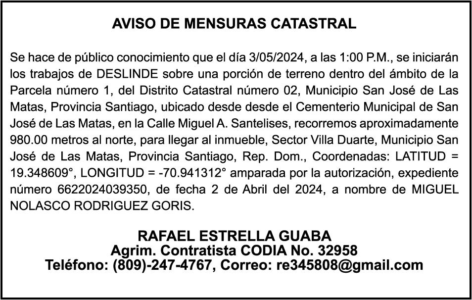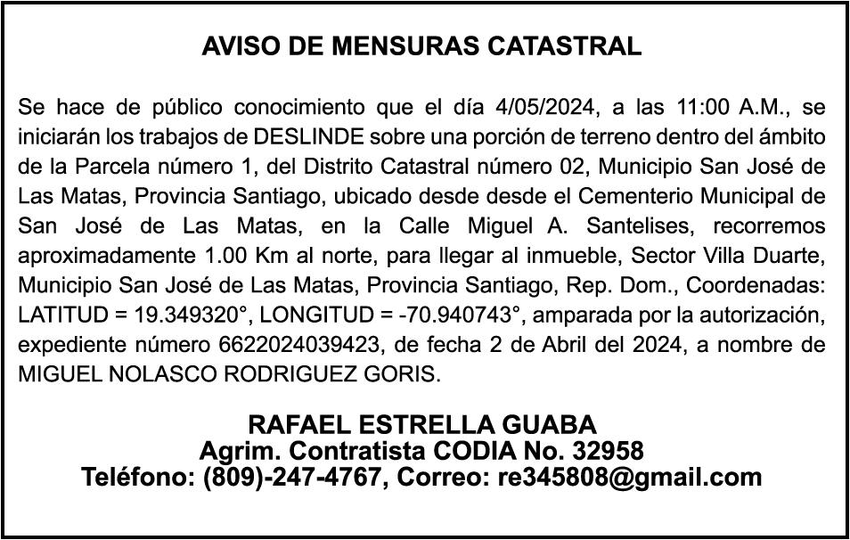 SE hace de público conocimiento la pérdida de certificado de depósito número 836844019 emitido por Banco Popular Dominicano, S. A., a favor de MAXLY STING GARCIA TAPIA, portador de la Cédula de Identidad y Electoral número 048-0098578-2, certificado expedido en fecha 19 de octubre de 2023 Por el Monto (US$158,457.68), más intereses generados a la fecha.