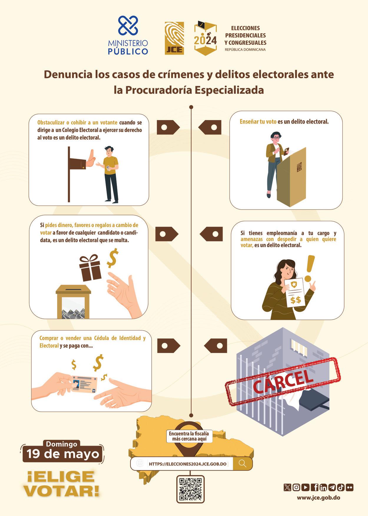 La Junta recordó a la ciudadanía que dispone en su portal Web del Directorio de las Procuradurías Especializadas de Investigación y Persecución de Crímenes y Delitos Electorales.