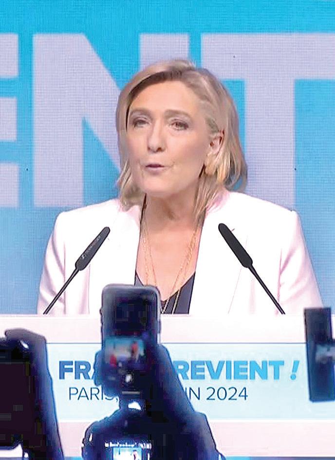 El Partido Popular Europeo se mantendrá como la primera fuerza de la Eurocámara con 189 escaños, pero las formaciones de centroderecha y extrema derecha lograron importantes avances. En la foto la primera ministra italiana, Giorgia Meloni, izq., y Marine Le Pen, de Francia, que destacaron la solidez de sus partidos. P.13