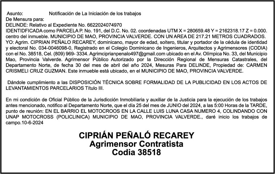 SE hace de público conocimiento las pérdidas de certificados de depósito número 832447320 emitido por Banco Popular Dominicano, S. A., a favor CARLOS ISAAC SUAREZ portador de la Cédula de Identidad y Electoral número 402-09537295, certificado expedido en fecha 23 de febrero de 2023 Por el Monto (RD$271,924.54), más intereses generados a la fecha.