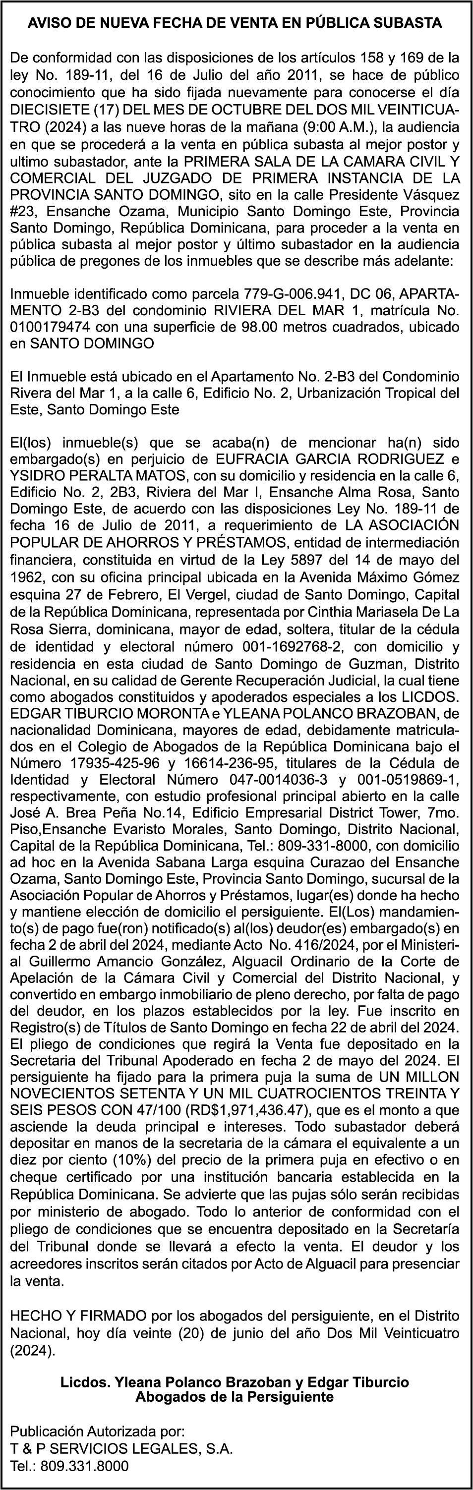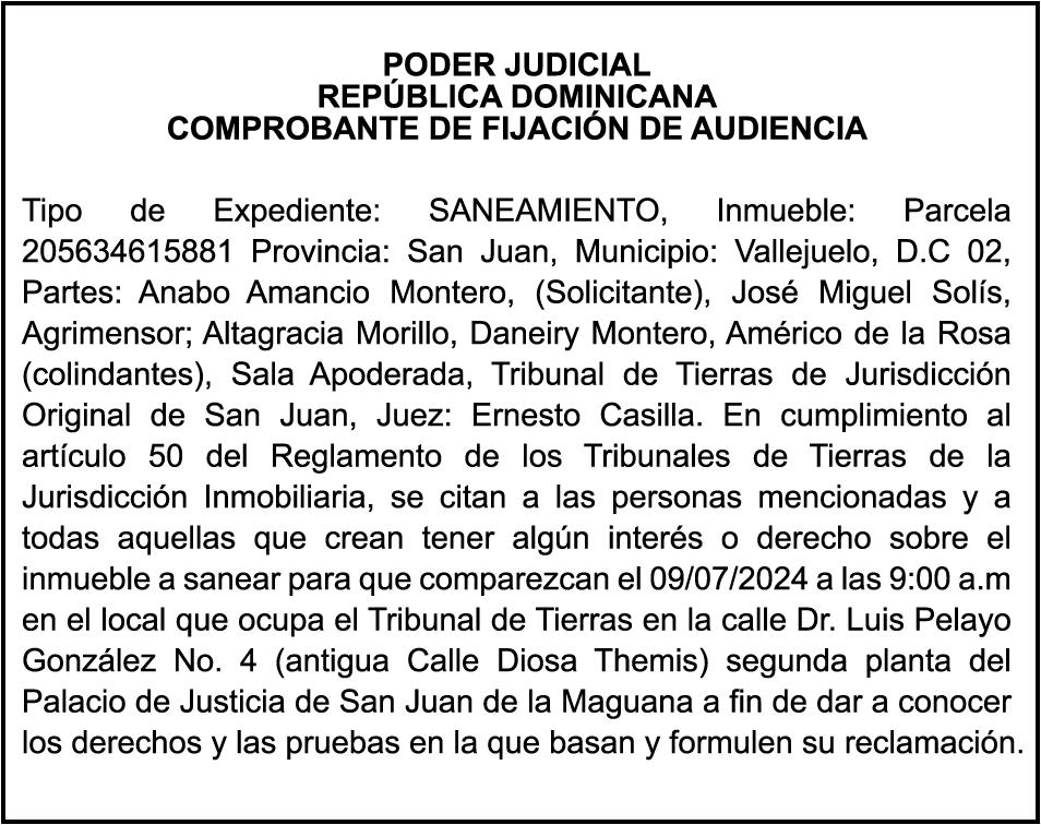 E M E L Y N ES M E R A LD A SORIANO DE LEON, portadora de la Cédula de Identidad y E le ct oral númer o 402-1471032-5 cer t i f icad o expedido en fecha 2 de mayo de 2024 por el Monto (RD$1 007 246 25) má s intereses generados a la fecha.