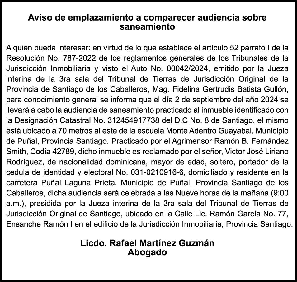SE hace de público conocimiento la pérdida del certificado financiero número 828417709 emitido por Banco Popular Dominicano, S. A., a favor MARTINA DE LOS SANTOS DE LA CRUZ, portador de la Cédula de Identidad y Electoral número 012-0077583-9, certificado expedido en fecha 28 de junio de 2022 por el Monto (RD$830,000.00), mas intereses generados a la fecha.
