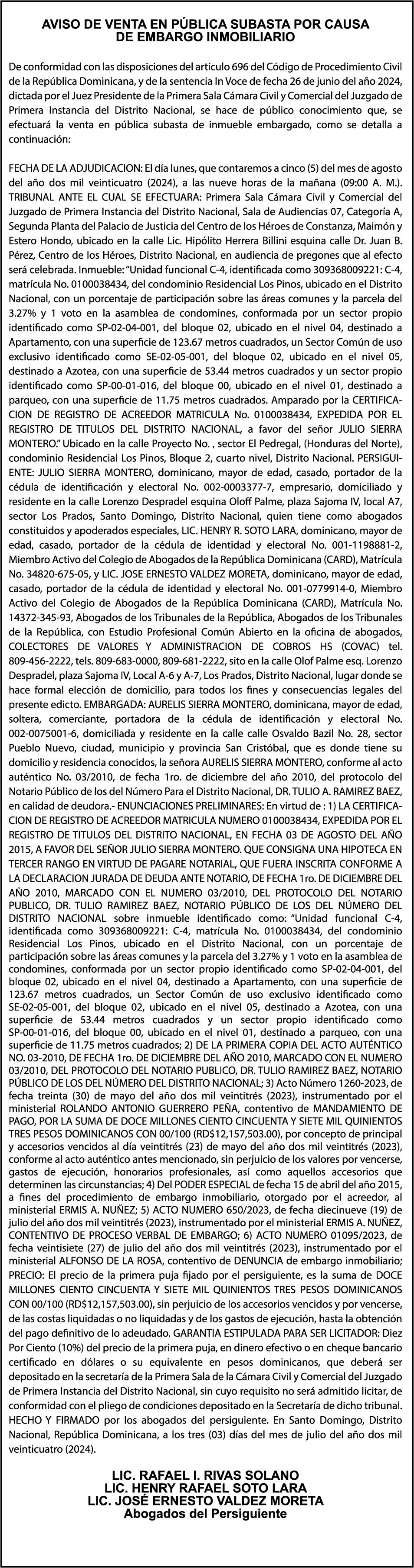 HERRERA DE HOLGUIN, portador de la Cédula de Identidad y Electoral número 012-0077583-9, certificado expedido en fecha 1 de abril de 2024 por el Monto (RD$50,000.00), mas intereses generados a la fecha.