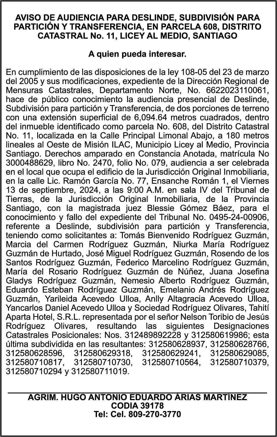 PERDIDA de Certificado de titulo (Duplicado del dueño), matricula no. 3000581070, designación catastral no. 502579559452, con una extensión superficial de (1000.11 mts2) a nombre de DAMARYS PEREZ DE MORLA.