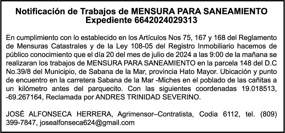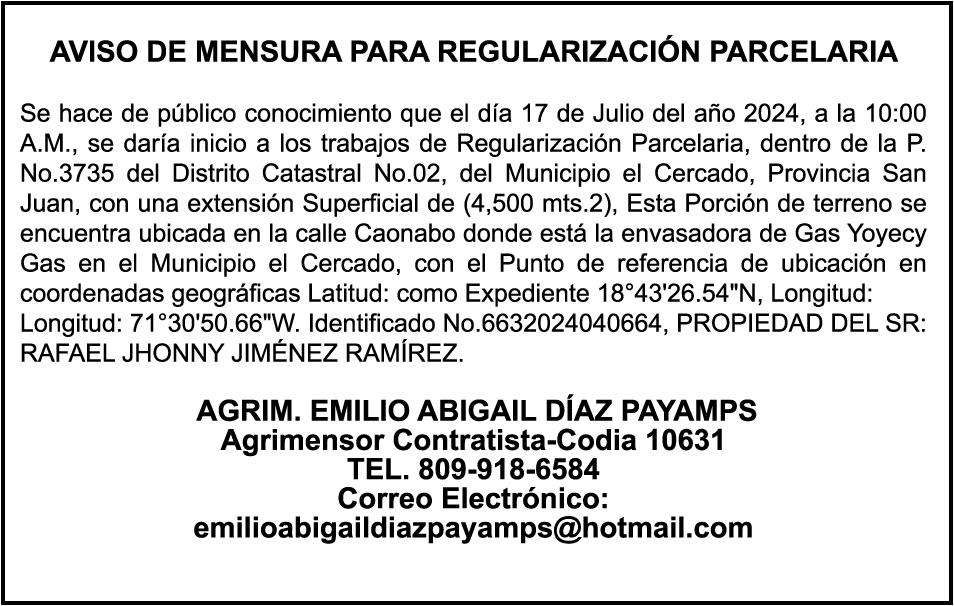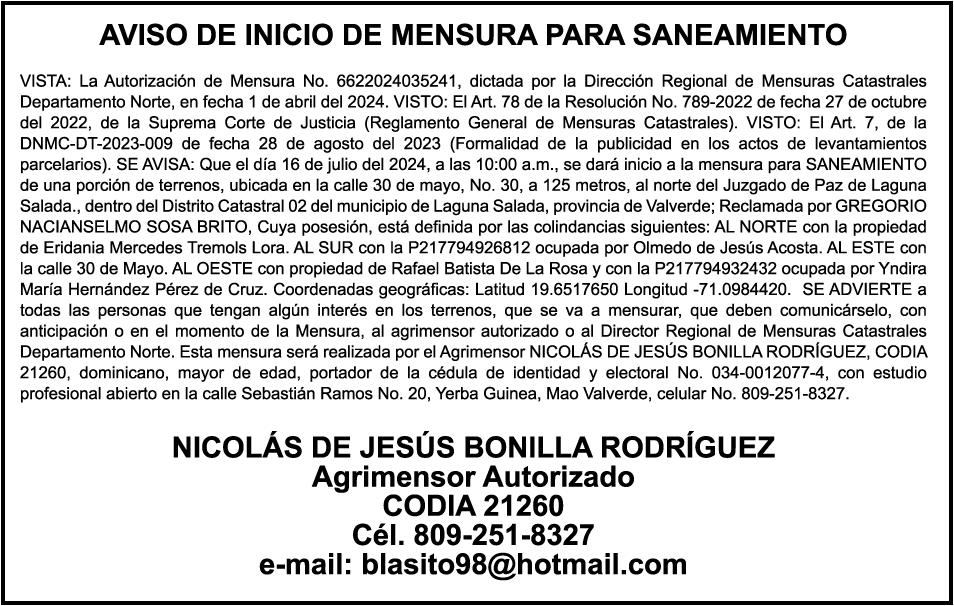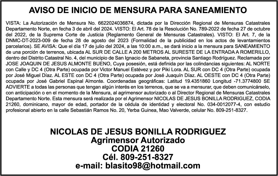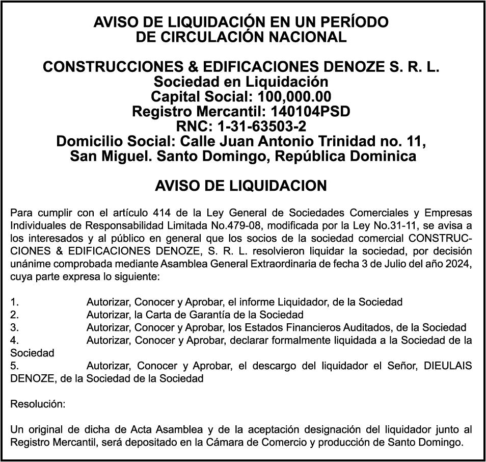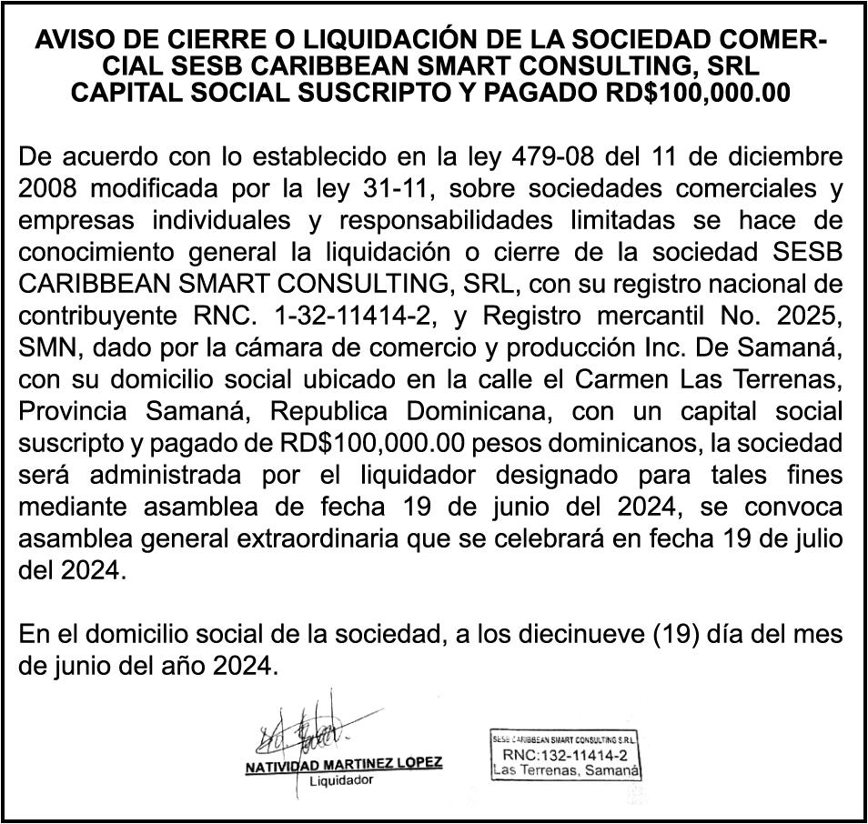 SE hace de público conocimiento la pérdida del certificado financiero número 840366454 emitido por Banco Popular Dominicano, S. A., a favor HEIDY VANESSA BENZAN HERRERA DE HOLGUIN, portador de la Cédula de Identidad y Electoral número 012-0077583-9, certificado expedido en fecha 1 de abril de 2024 por el Monto (RD$50,000.00), mas intereses generados a la fecha.