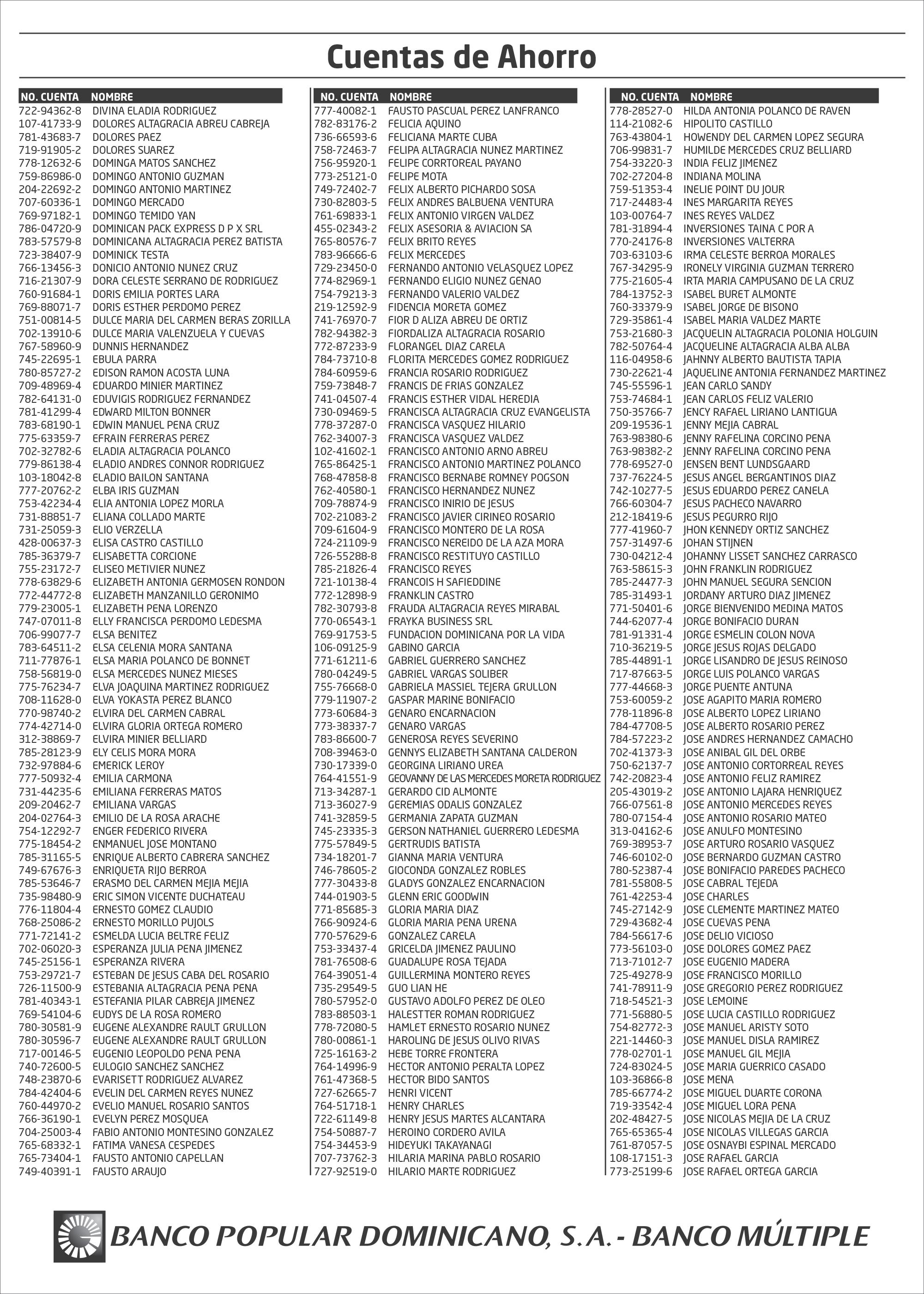 SE hace de público conocimiento la pérdida del certificado financiero número 826554966 emitido por Banco Popular Dominicano, S. A., a favor DILIA MARGARITA LLUBERES RORIGUEZ, portadora de la Cédula de Identidad y Electoral número 001-1717940-8, certificado expedido en fecha 2 de marzo de 2022 por el Monto (US$3,064.21), mas intereses generados a la fecha.