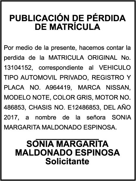 PERDIDA DE MATRICULA