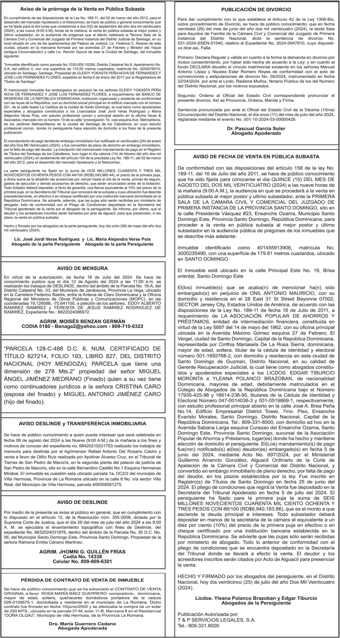 SE hace de público conocimiento la pérdida del certificado financiero número 835231853 emitido por Banco Popular Dominicano, S. A., a favor SILVIA MAGDALENA MATOS CASADO, Portadora de Cedula de Identidad y Electoral no. 018-0008354-3, certificado expedido en fecha 27 de julio de 2023 por el Monto (RD$1,000,000.00), mas intereses generados a la fecha.