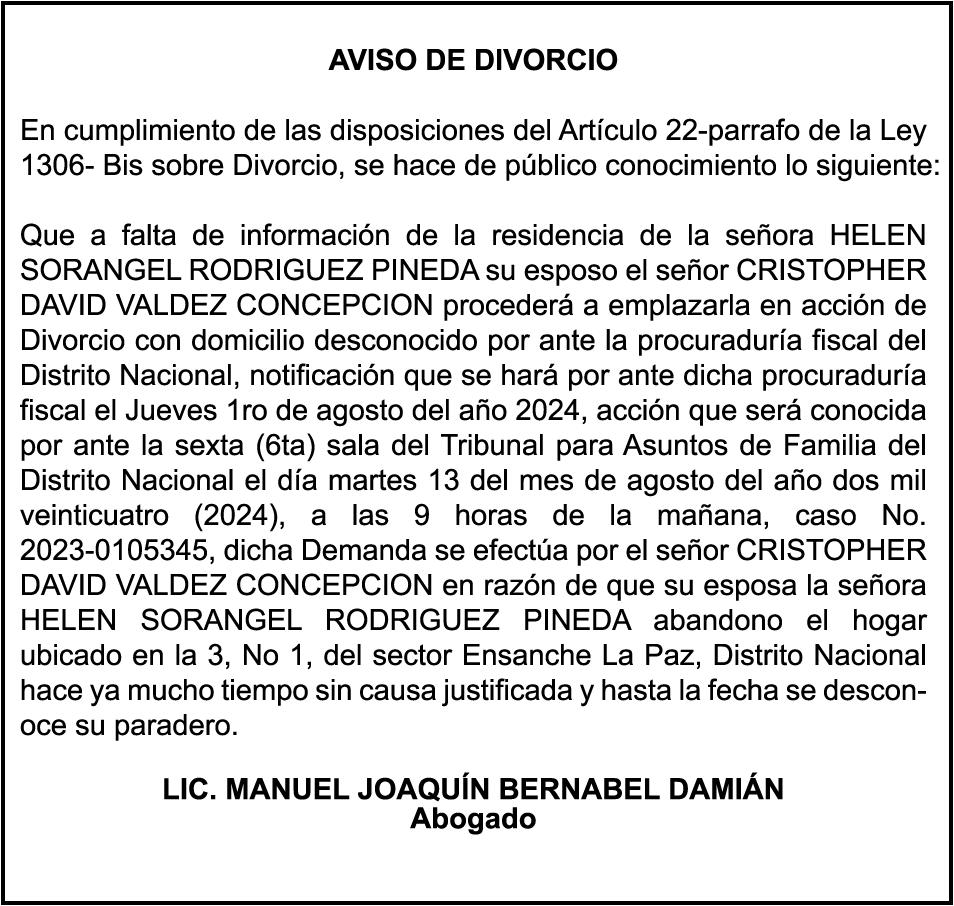 10:00 A.M. Rueda de prensa de familiares de Ana Iris Román Martínez, desaparecida desde el día 4 de julio. Colegio Dominicano de Periodistas (CDP).