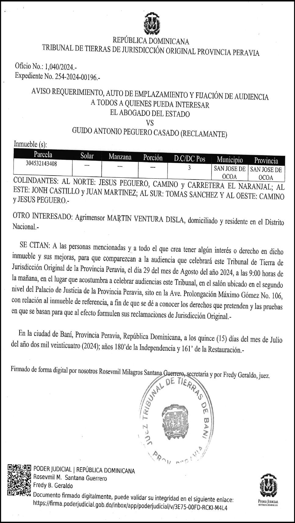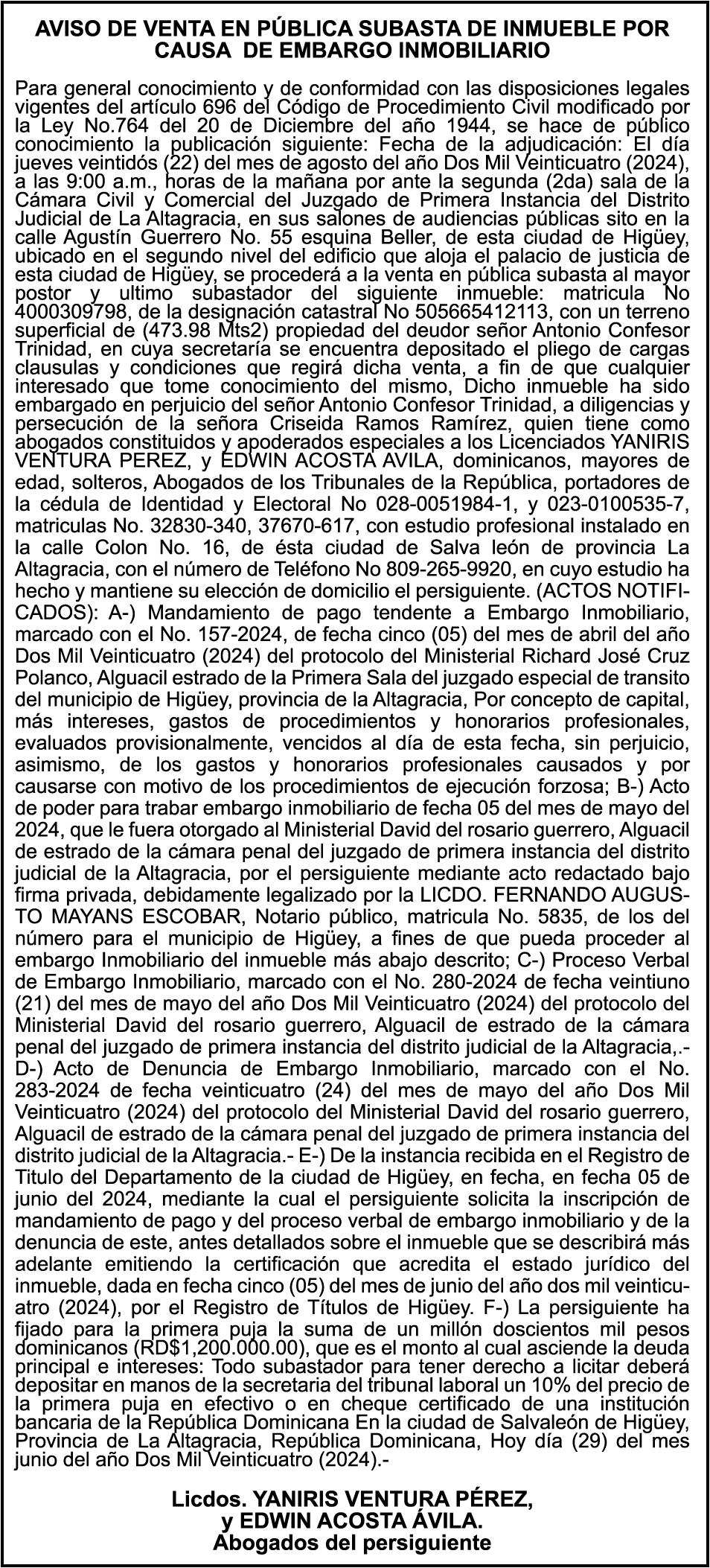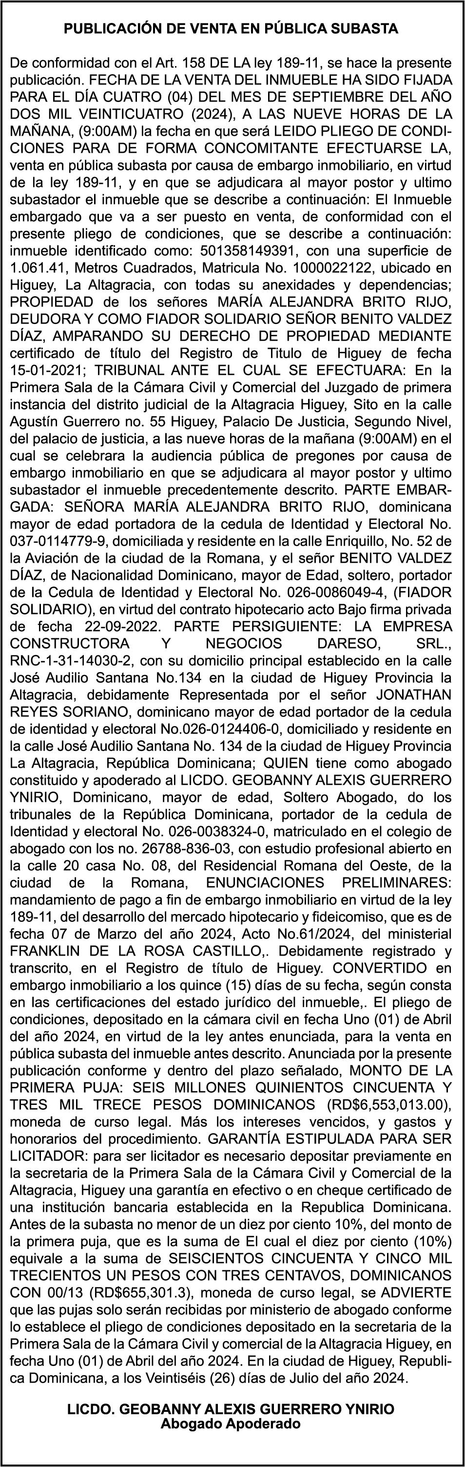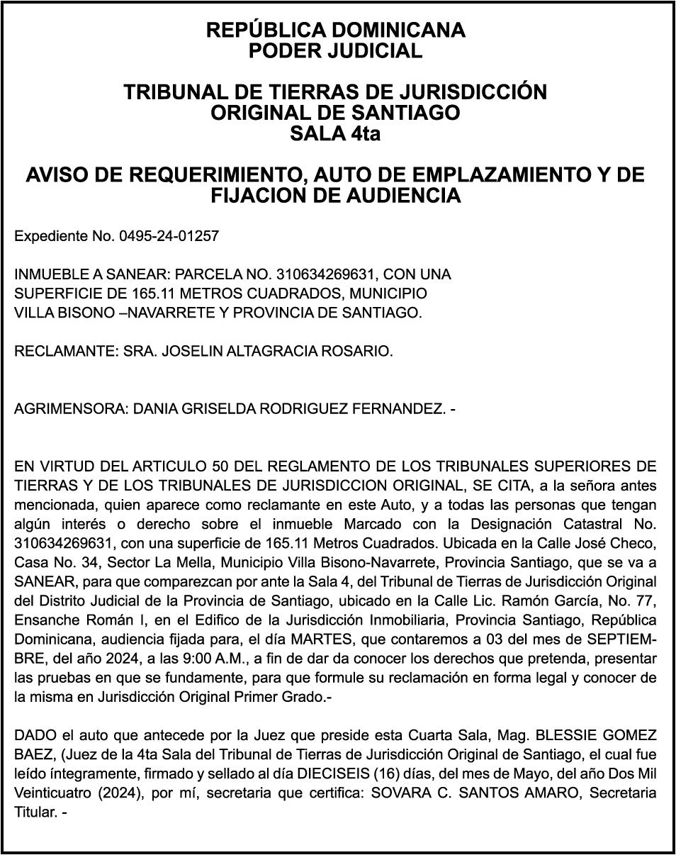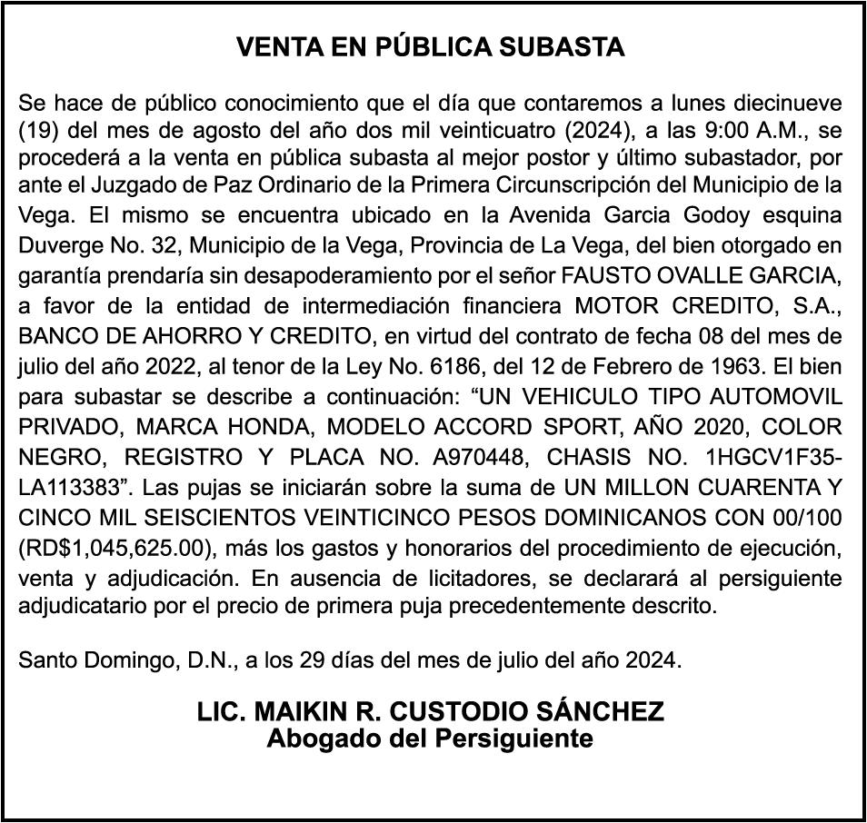 SE HACE de público conocimiento la pérdida del certificado financiero número 838456440 emitido por Banco Popular Dominicano, S. A., a favor BLADIMIR RIJO FIGUEROA, Portador de Cedula de Identidad y Electoral no. 402-1996063-6, certificado expedido en fecha 8 de enero de 2024 por el Monto (RD$41,048.67), mas intereses generados a la fecha.