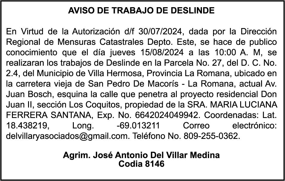 Asimismo, anunció que, según lo proyectado, para el primer semestre del 2025, se realizará el primer viaje en ferry en la ruta San Pedro de Macorís-Mayagüez, Puerto Rico, que se construye en la actualidad. Dijo que aunque se estuvo trabajando para que esté listo para el cierre de este año, hubo un retraso en la parte de Puerto Rico.