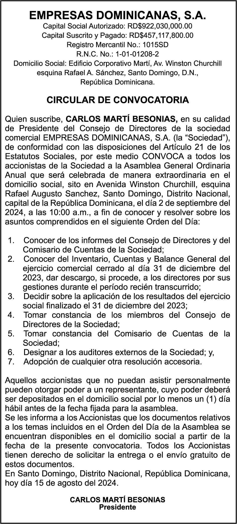 DOMINICANA S.A