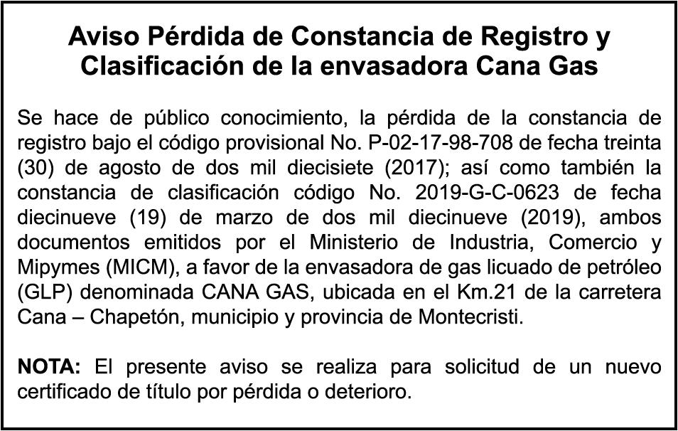 PERDIDA DE MATRICULA: MOTOCICLETA, Marca SUZUKI, Modelo AX100, Color Negro, Chasis No. LC6PAGA14K0011853, Placa No. K1931065, a Nombre de CHUBY V B COMERCIAL SRL.