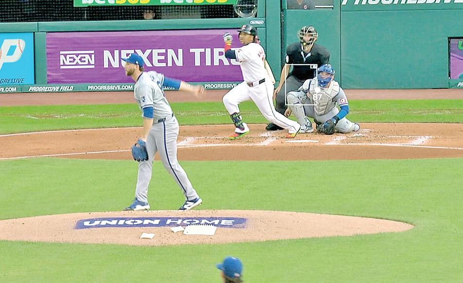 José Ramírez dispara uno de sus tres dobles en el segundo juego de Cleveland ayer. F.E.