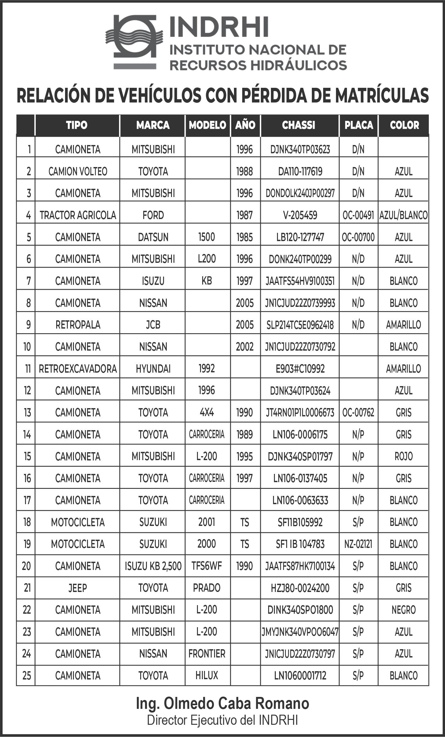 PERDIDA DE MATRICULA VEHICULO CARGA, Marca NISSAN, Modelo UBLGD211 SE, Color AZUL, Año 2000, Placa L053153, Chasis 3N6GD13S2ZK006472, a Nombre de CANDA MARIA PEÑA MARTINEZ