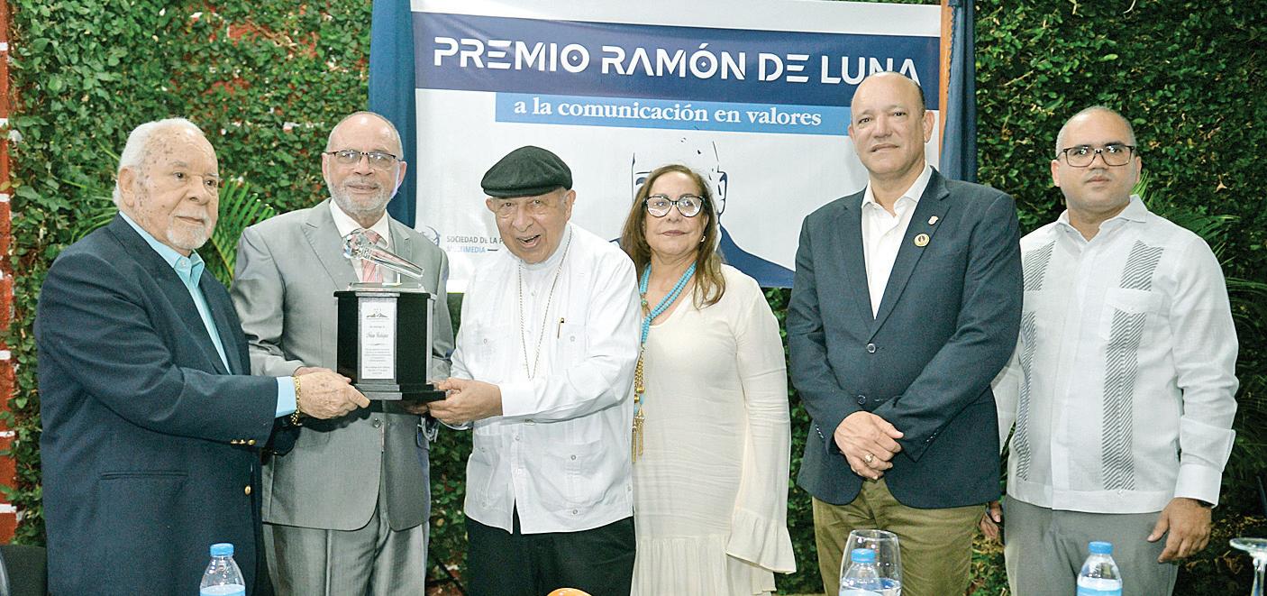 SANTIAGO. Ramón de Luna, Nelson Rodríguez, Ramón Benito de la Rosa y Carpio, Rosa Santos, Ulises Rodríguez y Lennys Tejada durante la entrega del “Premio Ramón de Luna” al director de elCaribe por sus aportes al periodismo ético y comunicación en valores, con motivo del 12 aniversario de la Sociedad de la Palabra Multimedia. P.14